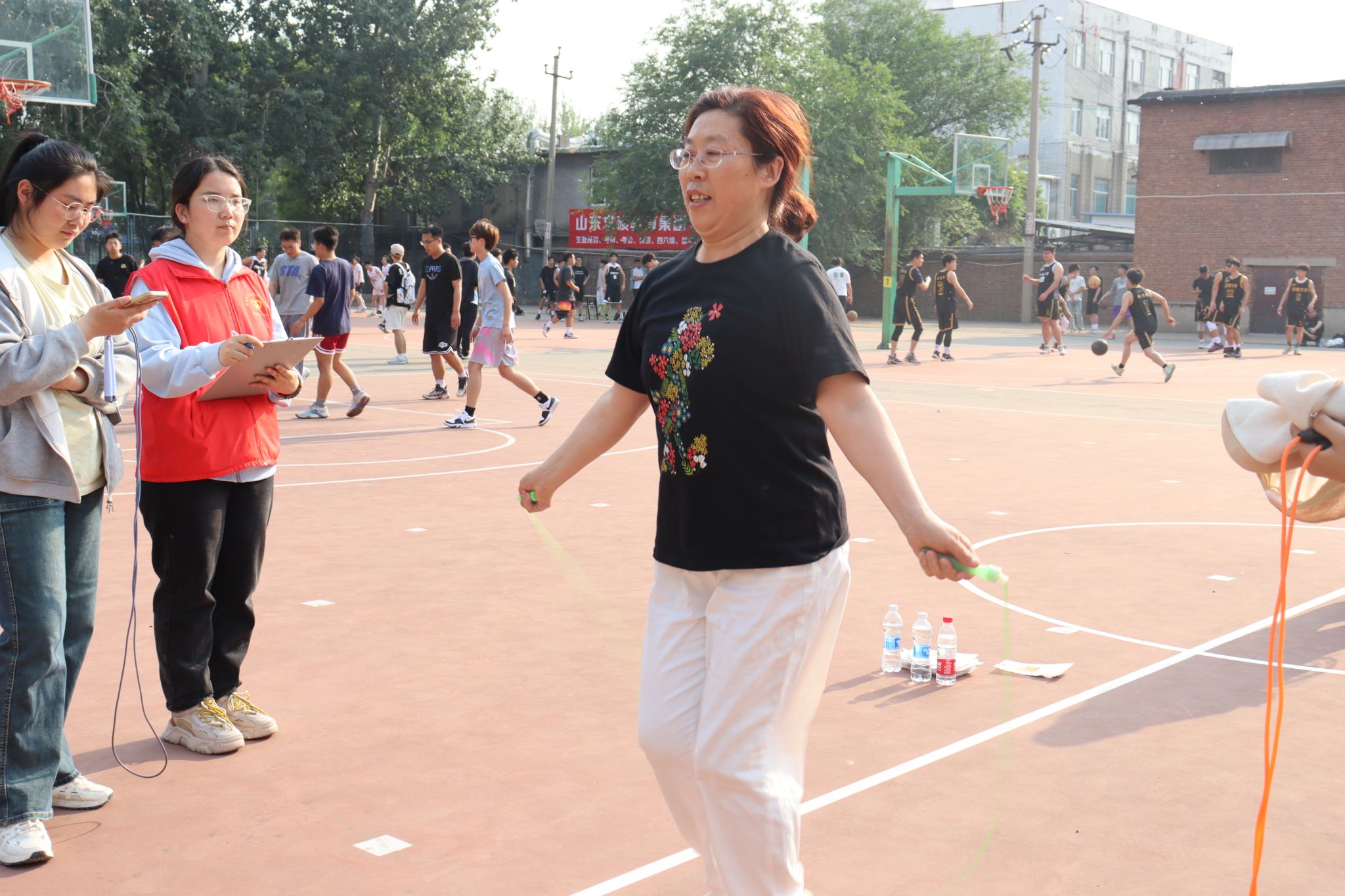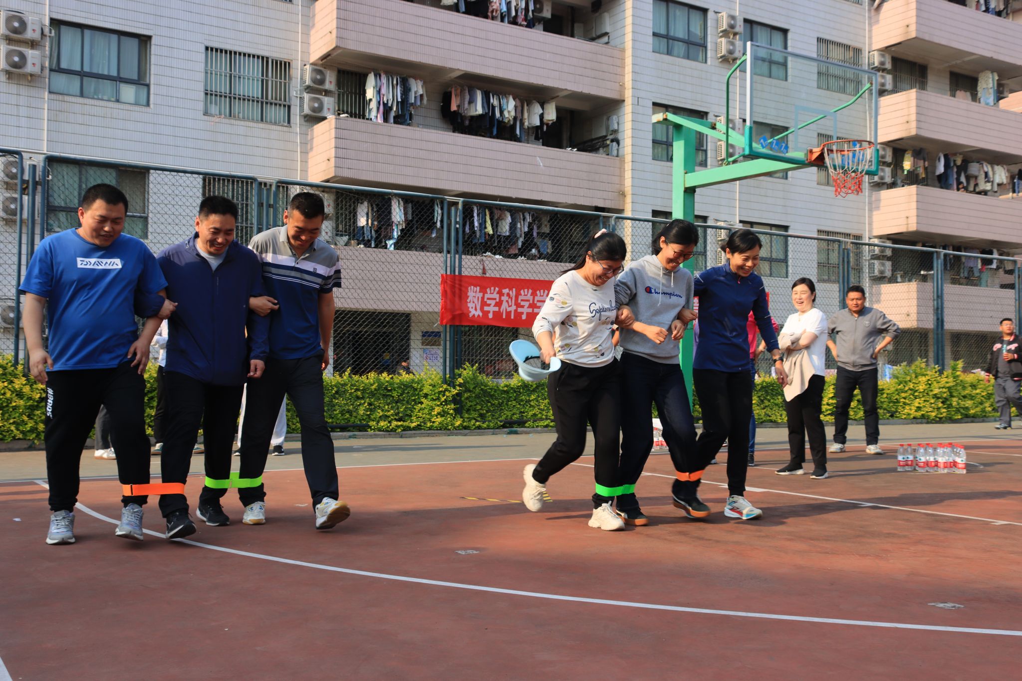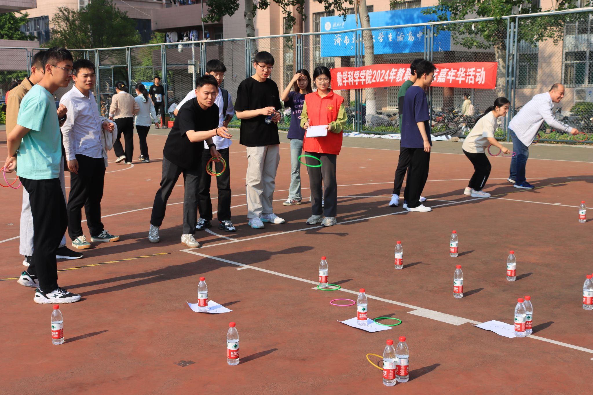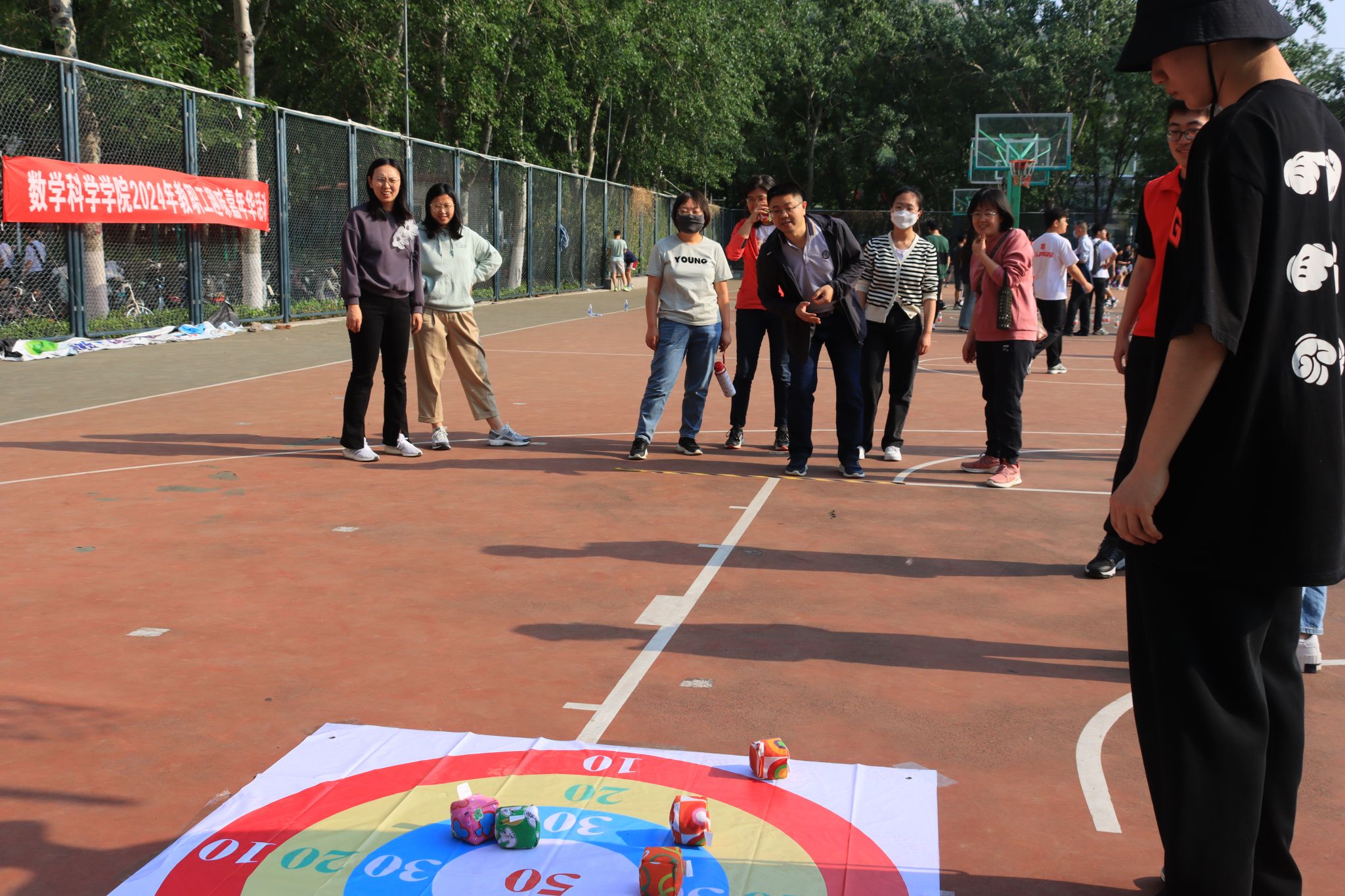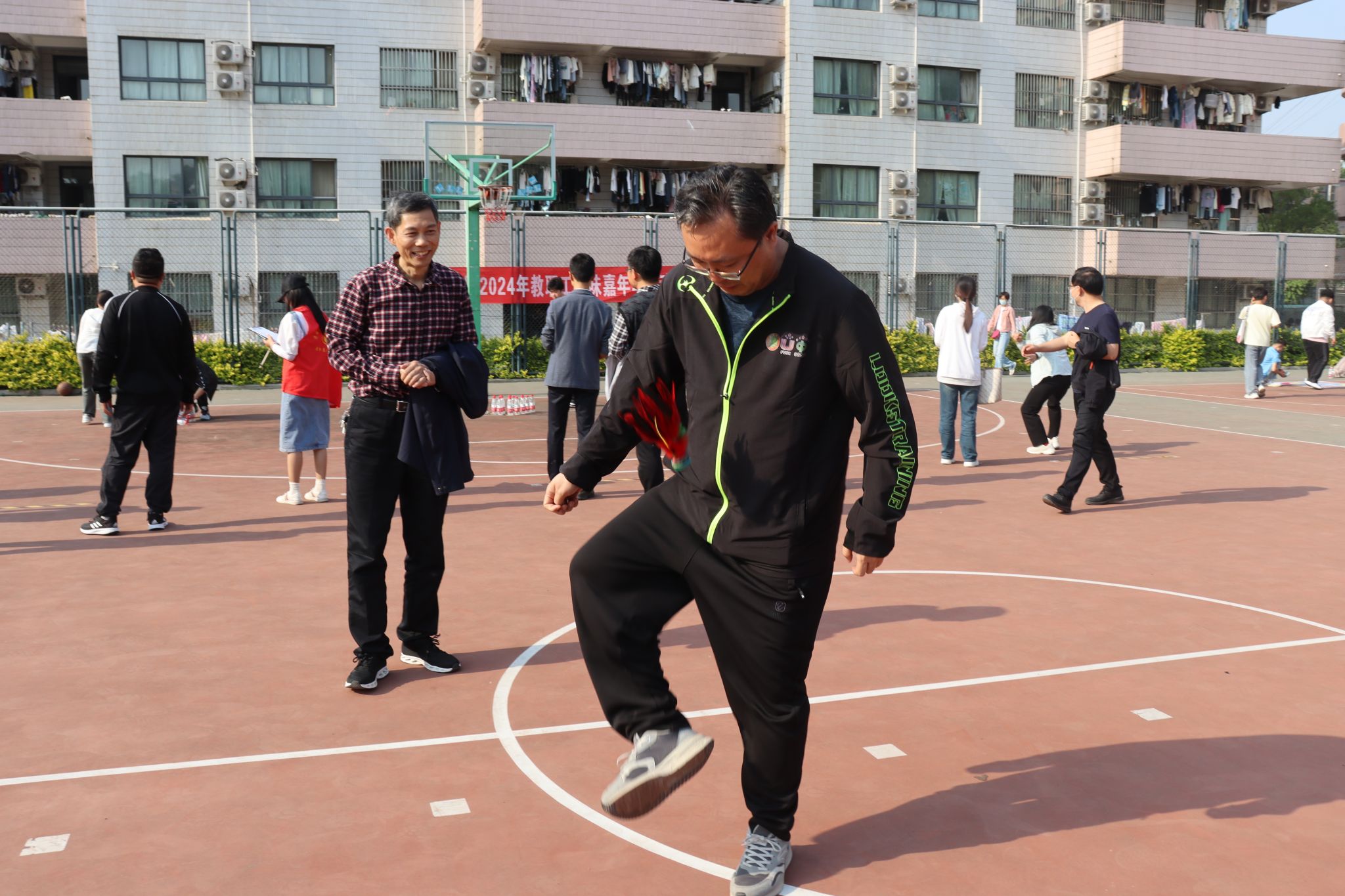 比赛项目丰富多样,既有沙包投准、一分钟跳绳、定点投篮和套圈等个人项目的角逐,也有三人四组和运篮球接力跑的团体项目的较量。在激烈角逐的个人项目中,教职工们用自己的汗水和努力,展现了他们卓越的风采和实力;在团队项目中,教职工们更是以默契配合和团队协作将比赛推向高潮。在此次运动会中,教职工们不仅展现了出色的体育竞技水平,更彰显了积极向上的精神风貌和团结协作的团队精神。他们相互鼓励、相互支持,共同为团队荣誉而奋斗。