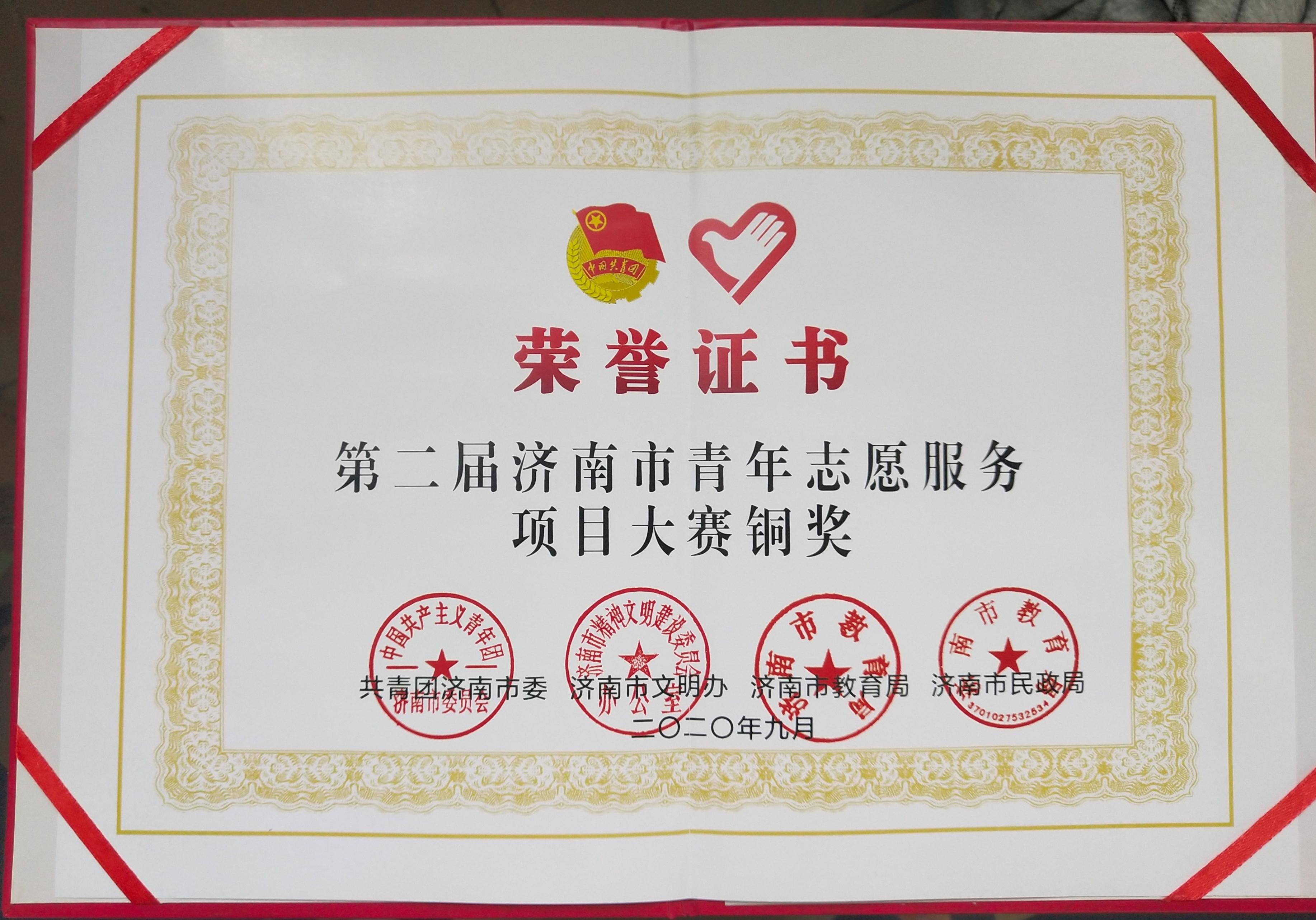 9月3日,由共青团济南市委、济南市文明办、济南市教育局、济南市民政局主办,济南市青年志愿者协会、济南市善益社会工作服务中心承办的第二届济南市青年志愿服务项目大赛成功举办。william威廉官网 “无痕济南”环保公益课堂项目获得大赛铜奖。