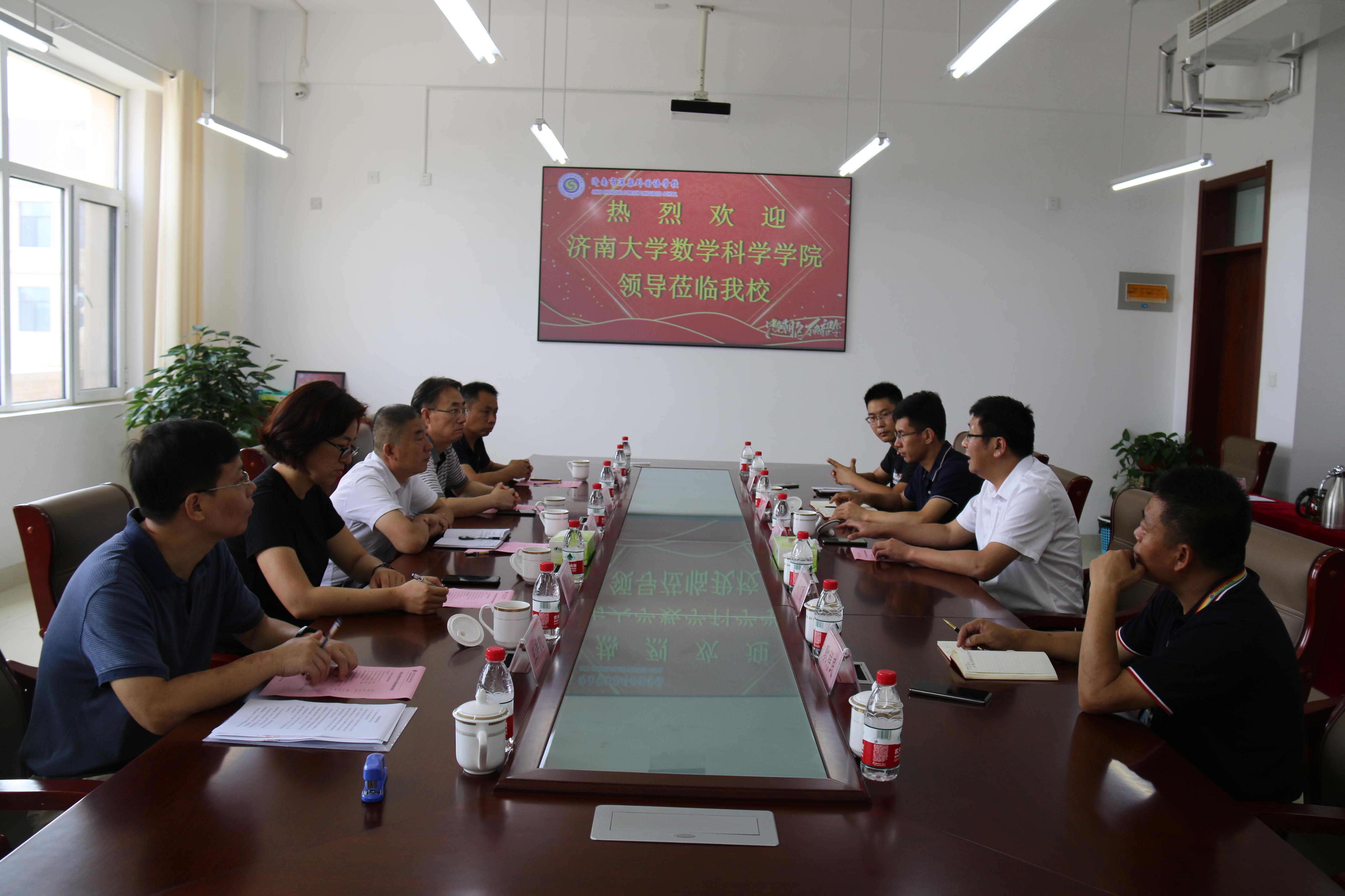 山东锦泽实业集团总经理黄路颖对WilliamHill中文官方网站一行到访表示欢迎,详细介绍了山东锦泽实业集团及旗下济南市深泉外国语学校、山东深泉问道网络科技有限公司的基本情况。学院党委书记侯启海对山东锦泽实业集团、济南市深泉外国语学校、山东深泉问道网络科技有限公司的热情接待表示感谢,高度赞扬了济南市深泉外国语学校在基础设施建设、校园文化培育、师资队伍建设、对外合作交流方面所取得的成绩,表达了就学生实习就业、对外合作交流等方面进行深度合作的愿望。学院院长管延勇详细介绍了WilliamHill中文官方网站的发展历程、学科概况、人才培养以及教育教学实践基地建设情况,希望进一步加强多层次人才工作的探讨与交流。