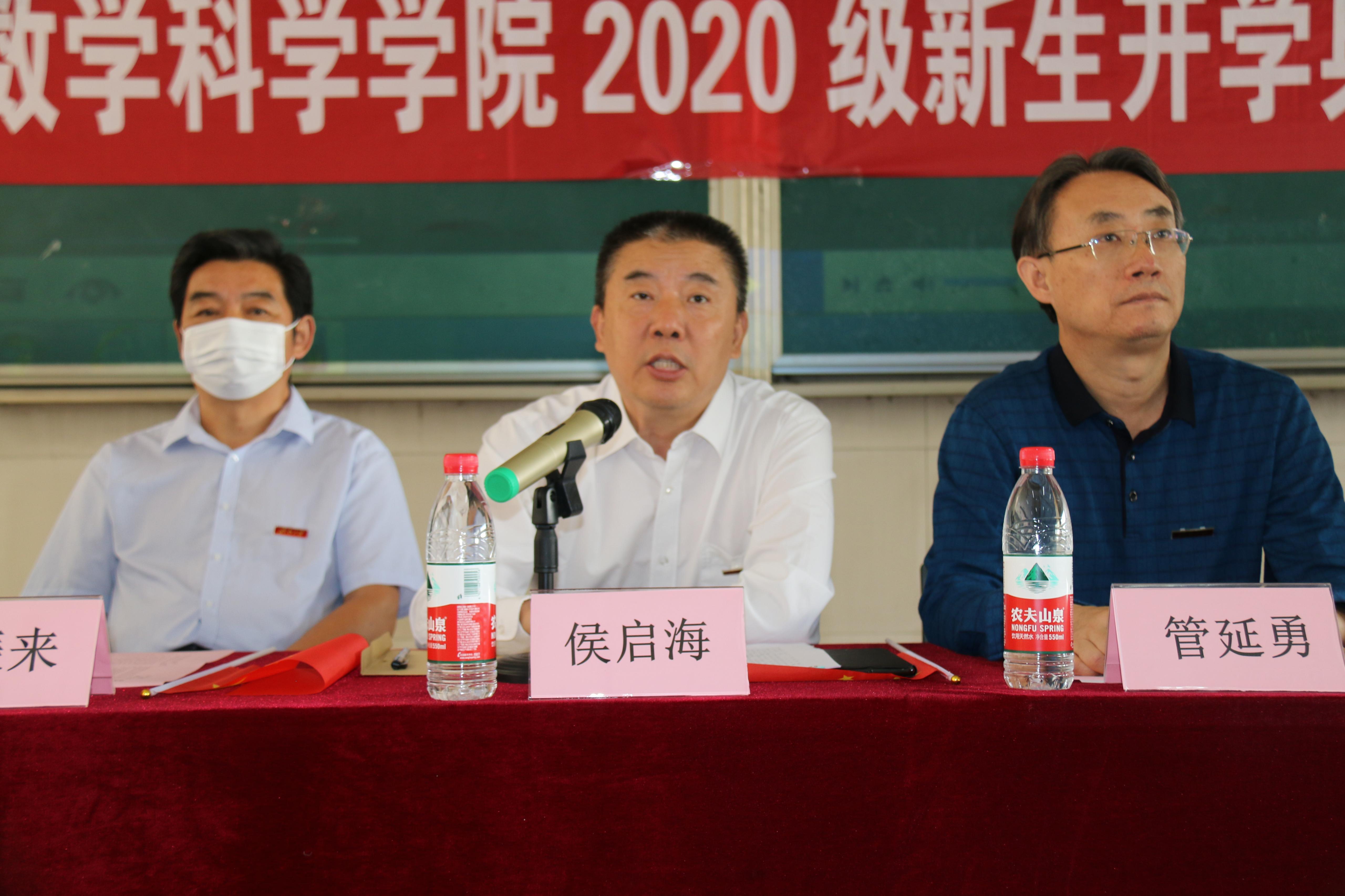 9月30日上午,WilliamHill中文官方网站2020级新生开学典礼在星硕举行。学院党委书记侯启海、学院院长管延勇、学院正处级组织员韩振来、学院党委副书记、副院长张沂红,学院副院长王洪凯、数学与应用数学系主任李凡军、金融数学系主任温凤桐、科学计算与数据分析系主任靳邵礼出席开学典礼,学院教授代表、新生班主任、学生工作人员、助理班主任以及全体2020级新生参加开学典礼。典礼由学院党委副书记、副院长张沂红主持。