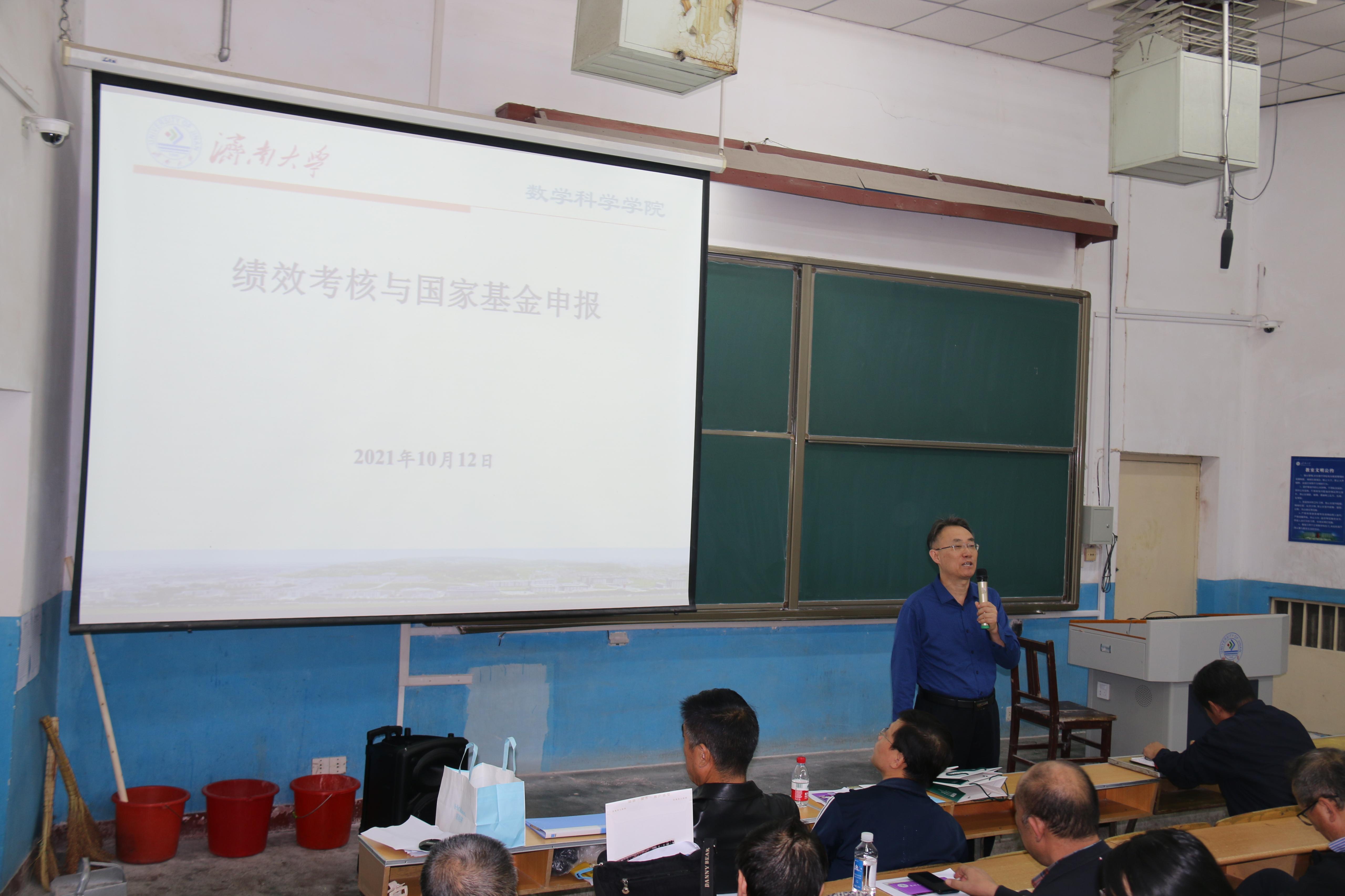 学院院长管延勇从考核原则、考核对象、考核周期与时间、考核内容、考核流程和方法、考核结果确定以及运用等方面全面解读了《william威廉中文官网党政群团教辅单位绩效考核办法(试行)》《william威廉中文官网中层干部年度考核办法》等文件,重点解读了学院2021年教学、科研、对外交流、科技创新、学生考研率等具体考核指标任务,并就如何保证完成年度工作任务提出了要求。随后,管院长梳理了“十三五”期间校院国家自然科学基金申报情况,总结表扬了学院在“十三五”基金立项的优异表现,全面介绍了“十四五”开局之年学校国家自然科学基金的申报以及立项情况,重点介绍了学院2022年国家自然科学基金申请的初步思路与想法。