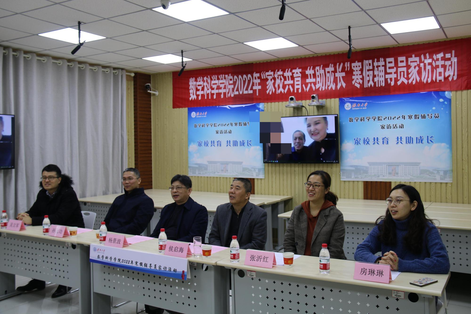 2022年1月7日,学院在7教智慧教室组织开展了2022年“家校共育、共助成长”线上寒假辅导员家访活动。学校党委常委、副校长杨景波出席活动,学院党委书记侯启海、学院院长孙元功、党委副书记、副院长张沂红,副院长王洪凯、副院长靳绍礼、辅导员赵华磊、吴立军、耿婉茹、房琳琳、班主任郝志峰、成晓晗等参加活动。