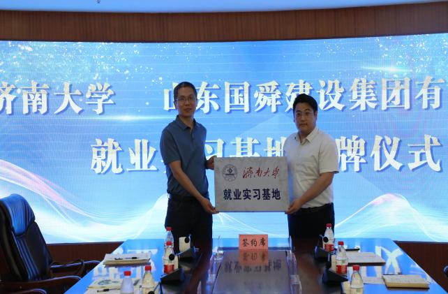 6月21日下午,WilliamHill中文官方网站与山东国舜集团校企合作暨共建基地挂牌仪式于山东国舜集团园区召开。山东国舜集团董事长孙德山,副总经理冯超、邢帅帅,信息化办公室技术总监卢忠阳,办公室主任宋甲亮,人力资源部部长郭付东,WilliamHill中文官方网站党委书记侯启海,院长孙元功,党委副书记张沂红,实验中心主任徐法升,博士教师杜传斌,团委书记于洋出席了挂牌仪式。