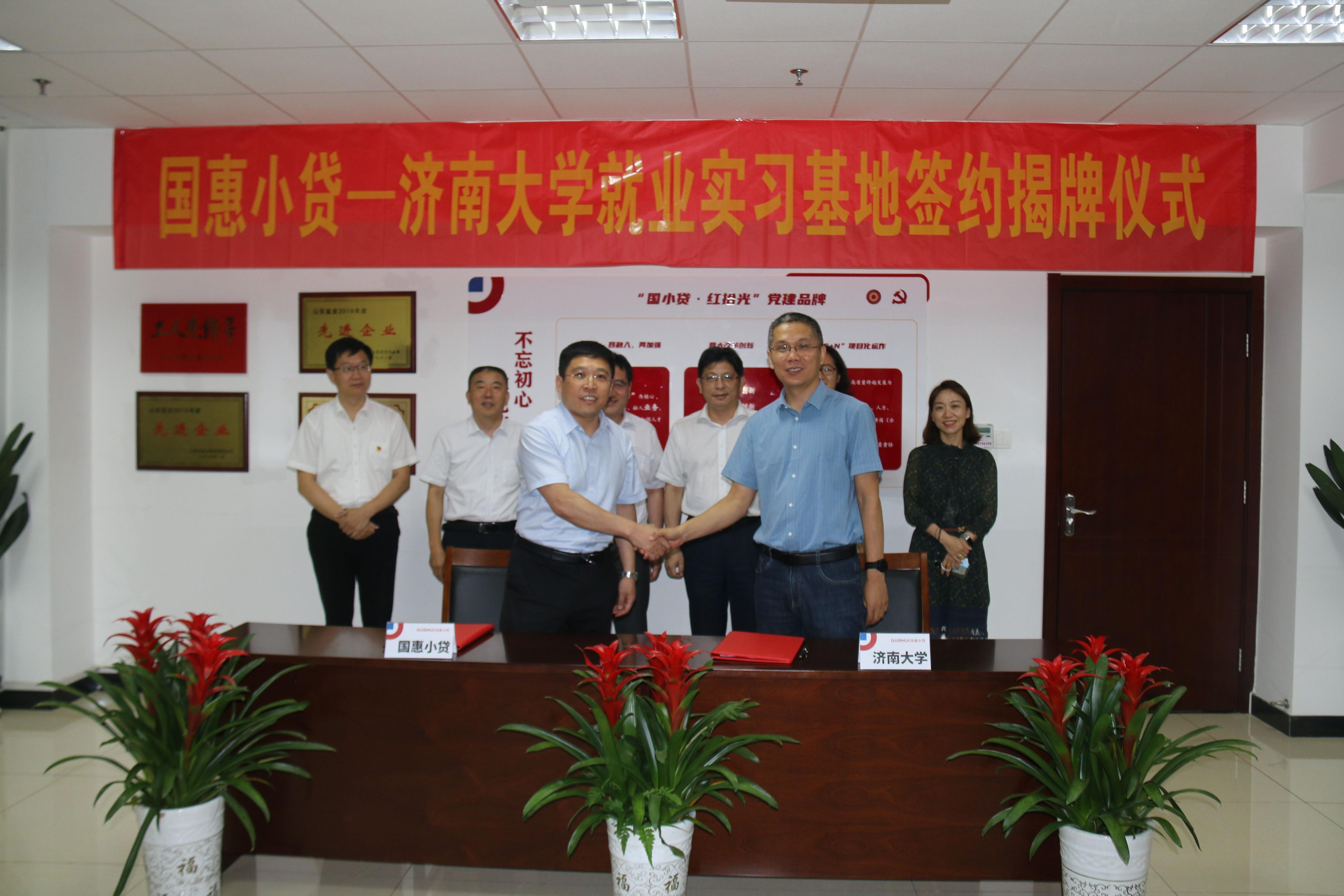 在山东国惠小额贷款有限公司,单一春介绍了公司“十四五”战略发展规划、基本情况、党建品牌、企业文化以及人才“引用育留”机制,表达了希望更多优秀毕业生加入企业的愿望。杨景波与杜冰共同为“william威廉中文官网就业实习基地”揭牌。孙元功、单一春代表校企双方共同签署了《共建william威廉中文官网毕业生就业基地协议书》。