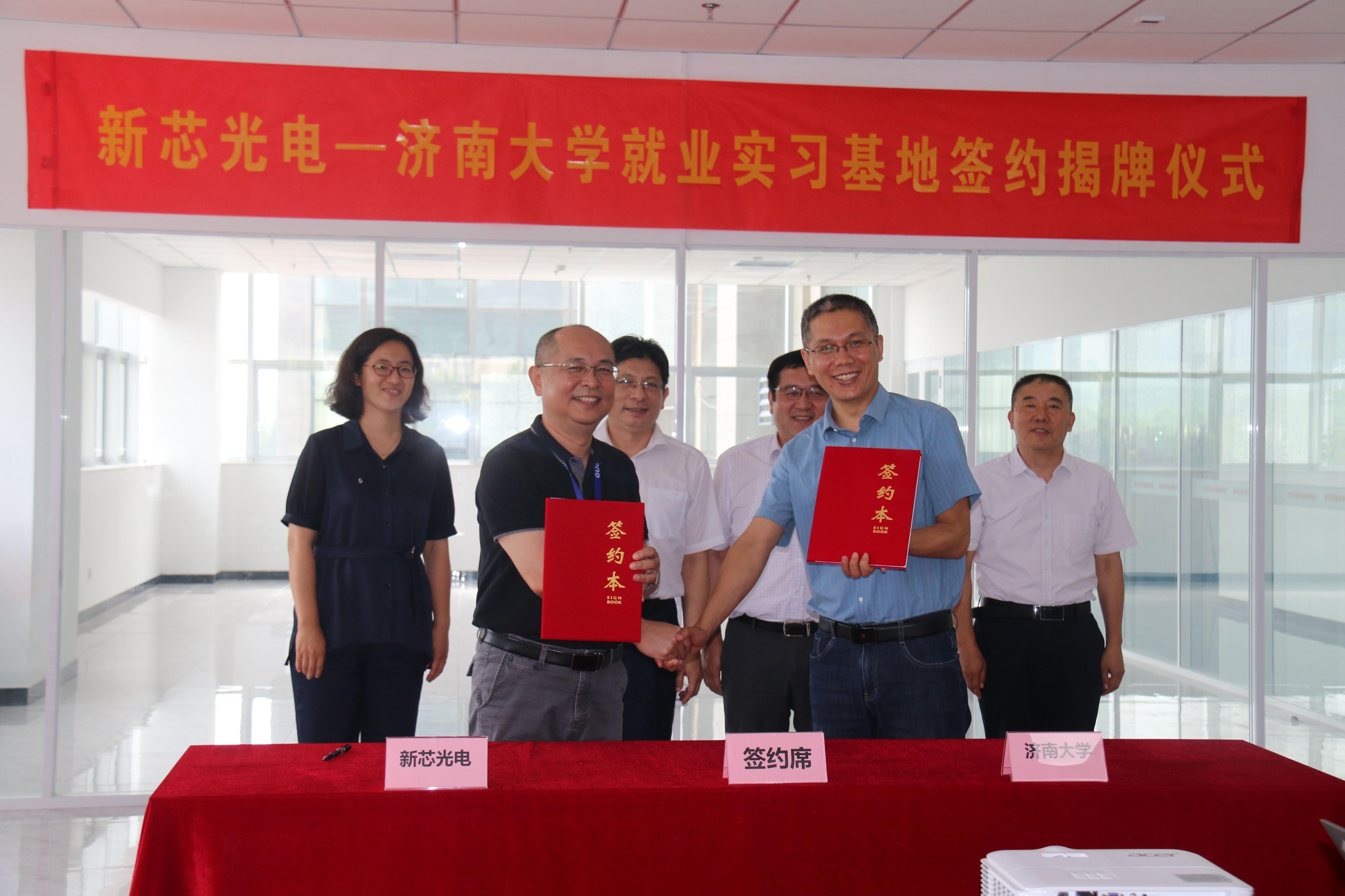 为贯彻落实党中央、国务院“稳就业”“保就业”决策部署,落实教育部2022年“访企拓岗促就业”专项行动要求,进一步扩大毕业生就业渠道,提升毕业生就业质量,6月30日,WilliamHill中文官方网站与山东国惠集团直属企业新芯光电和国惠小贷共建就业实习基地签约暨揭牌仪式分别在新芯光电和国惠小贷会议室举行。学校副校长杨景波,山东国惠集团总助、国惠小贷书记、董事长兼任新芯光电书记、董事长杜冰,新芯光电总经理沈镇,国惠小贷副书记、董事、总经理单一春出席活动。集团相关部门负责人、学院相关负责人参加活动。