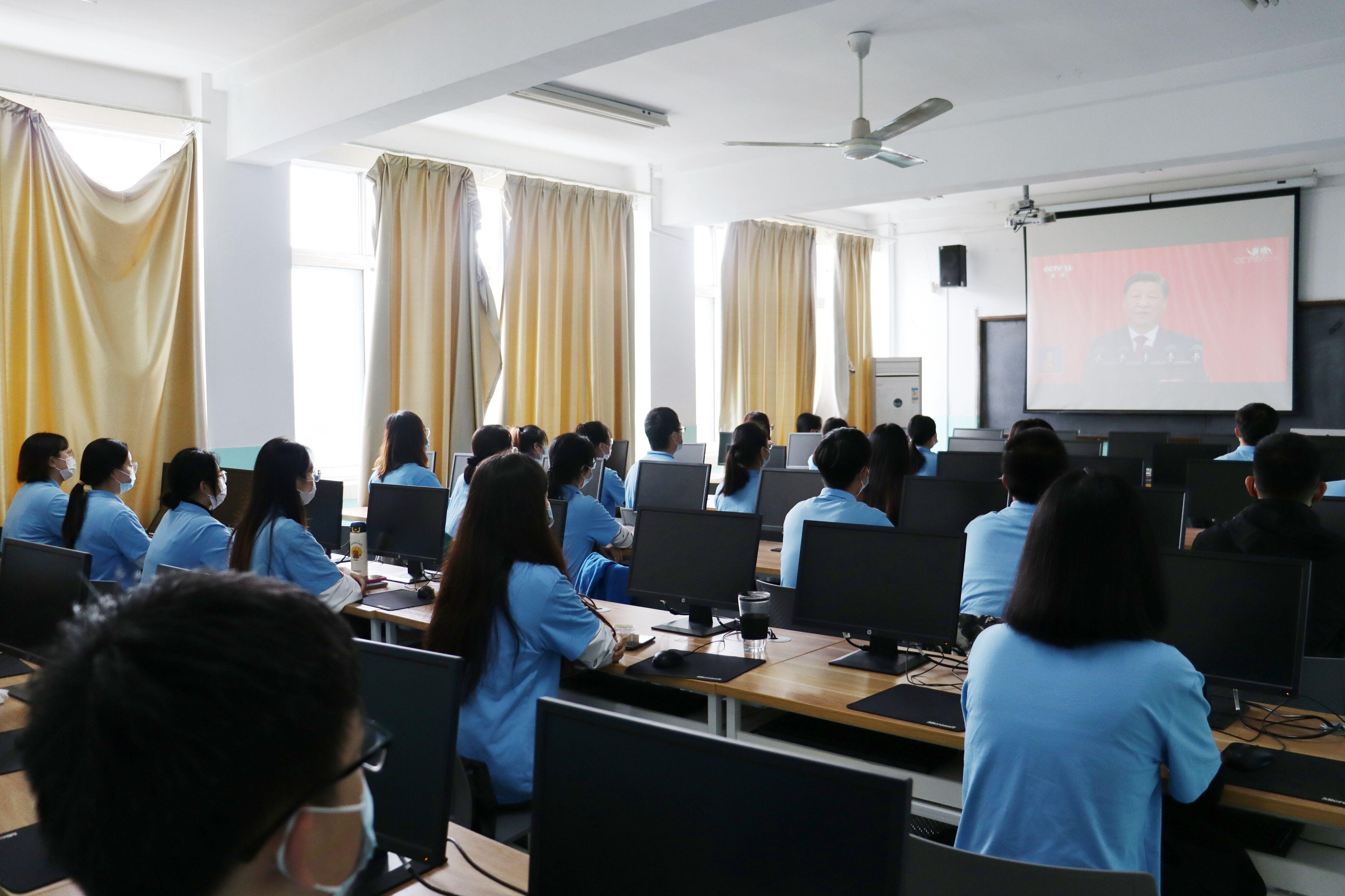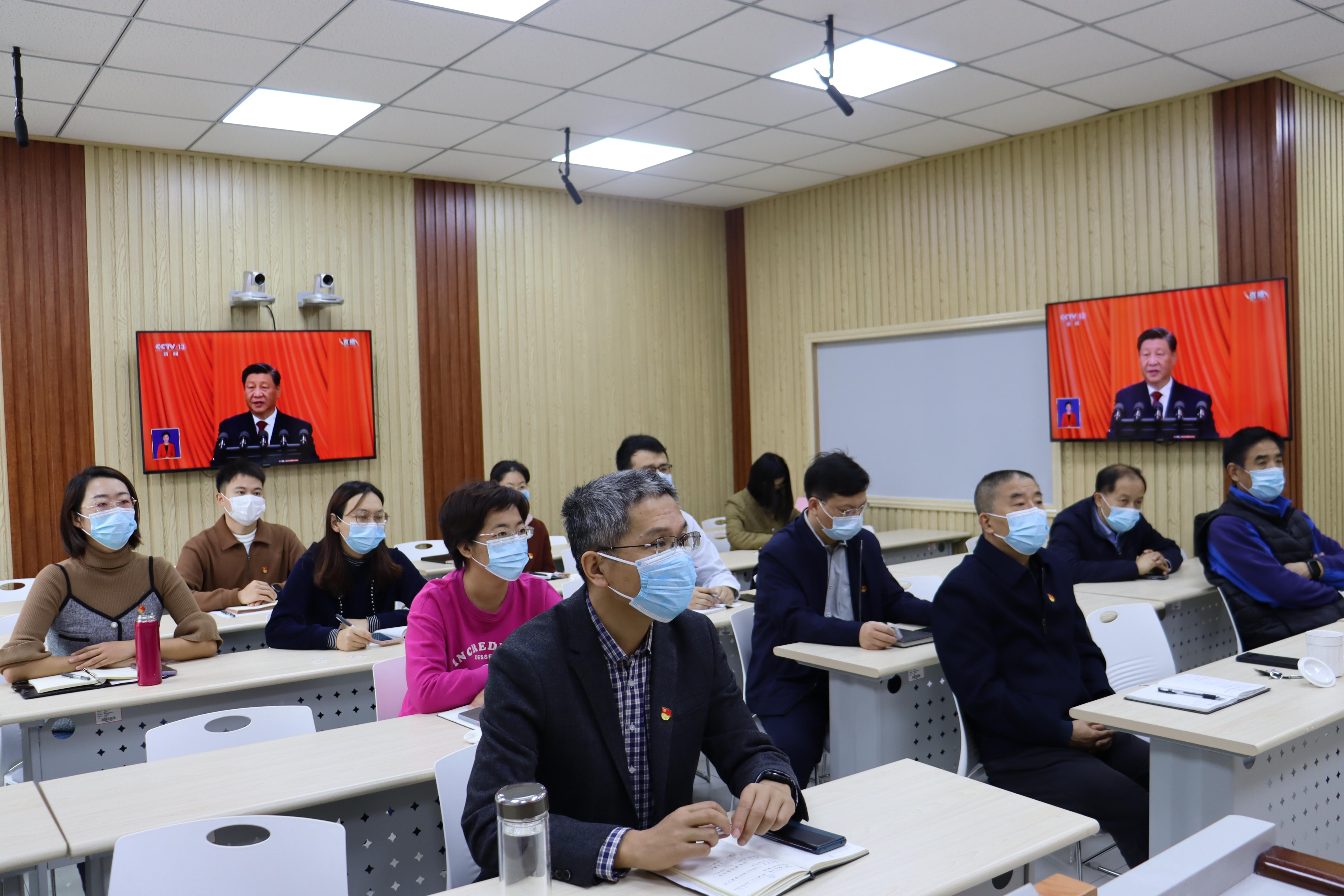 在学院智慧教室,WilliamHill中文官方网站党委理论学习中心组、全体行政人员集体观看了开幕会直播,与会人员认真听取了习近平总书记代表第十九届中央委员会所作的报告。与此同时,学院组织各党支部、团支部通过视频会议以线上线下相结合、集中学习与分散学习相结合的形式在教研室、教室、宿舍等进行学习。