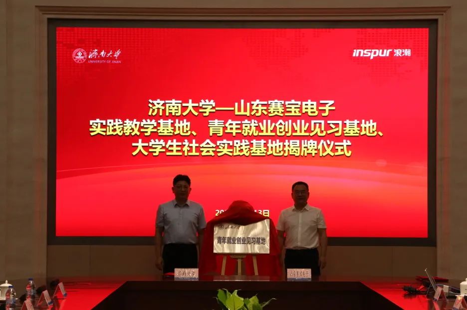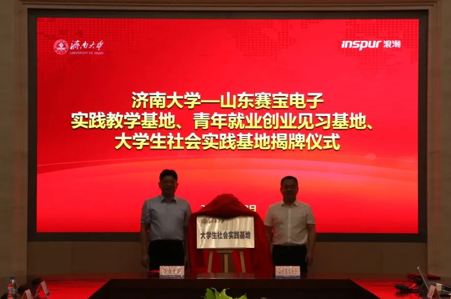 7月13日,学院社会实践、就业创业见习、实践教学基地签约暨揭牌仪式在浪潮集团举行。学校党委副书记杨景波,学校团委书记胡春毅、团委副书记潘颖、学院党委书记侯启海、院长孙元功、党委副书记张沂红等参加签约揭牌仪式。