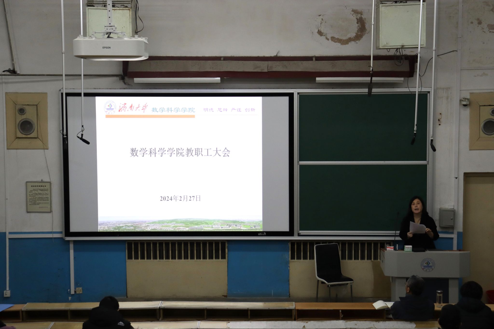 会上,学院党委书记崔英静首先带领全体教职工学习了校党委书记刘春华同志在学校四届四次全委会扩大会议上作的题为《锚定目标抓落实 聚焦重点求突破 努力开创高水平大学建设新局面》的工作报告,并结合学院党委工作实际,围绕“七个聚焦聚力”对学院2024年的重点工作进行了细致部署。崔英静强调,全院教职工要深刻领会报告精神,立足本职工作锚定目标抓落实、聚焦重点求突破,以实际工作成效为学院发展贡献力量。崔英静还对上一学期学院党委的工作进行了简要报告,并对党费收缴情况进行了说明。