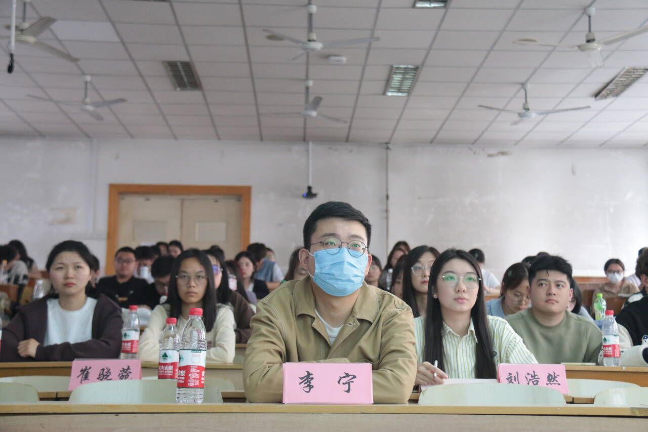 会议开始,崔骁菀从如何备课、如何讲课以及参赛心得三个方面分享了自己的经验,对PPT的制作思路、主题颜色以及黑板讲课的板书设计、内容安排等细节进行了详细的讲解。此外,崔骁菀还表示可以在优秀教师讲课比赛视频中观察学习她们的神态、动作、停顿以及语调变化。刘浩然则是从大赛流程概述,如何找准定位,怎样安排练习,个人经验四个部分进行了分享,对讲课内容的思政元素、课程设计的重点、讲课过程的互动等等作出强调,并现场给同学们展示了大赛中的黑板讲课环节,让同学们对师范生技能大赛有了更加深刻的认识和了解。