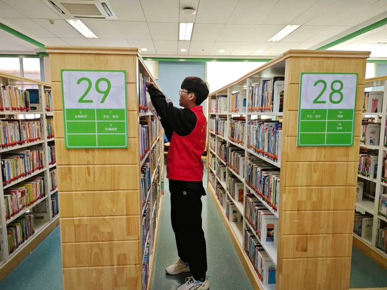 活动伊始,志愿者们与图书馆的工作人员进行沟通,进一步了解活动的具体任务与要求。随后志愿者们对图书馆的各个区域进行了实地考察,了解图书的分类和摆放规则。在志愿服务期间,志愿者们分工明确,各司其职,一起整理和分类了馆内图书,在整理图书的过程中,志愿者们互相交流经验,相互帮助解决问题,共同为图书馆的整洁和有序贡献自己的力量。整理完图书后,志愿者们积极参与读者服务工作,解答读者的咨询问题,指引他们找到所需的图书或资料。在与读者的交流中,志愿者们逐渐掌握了如何更好服务读者的技巧,并提供了有针对性的建议。