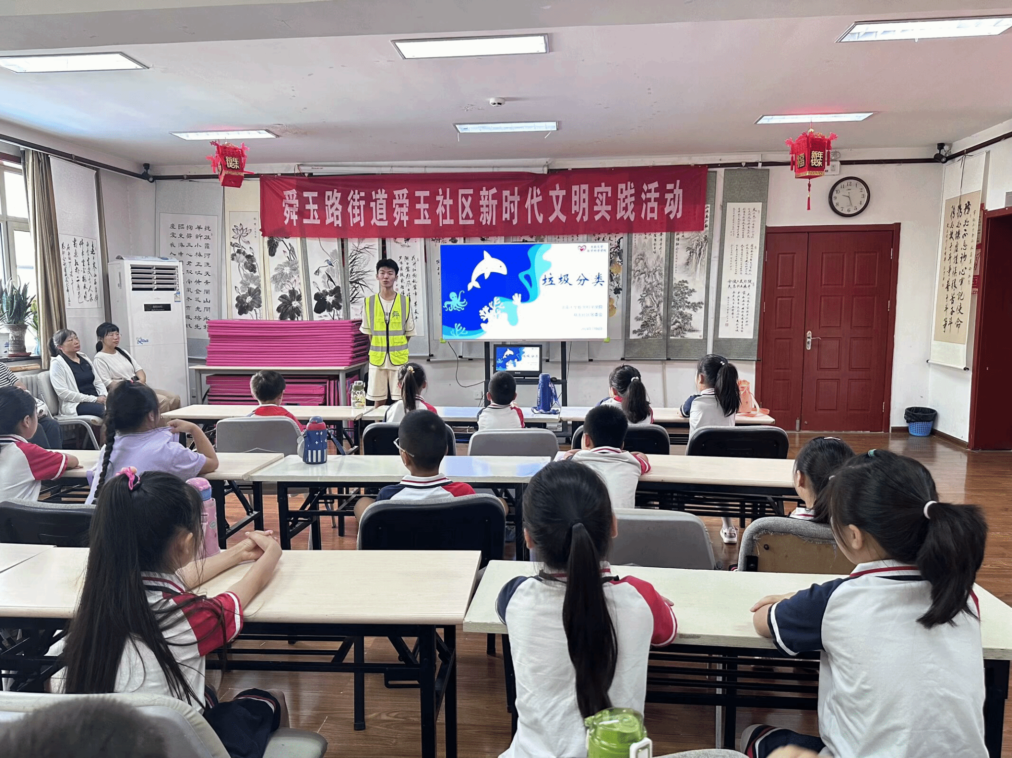 活动伊始,由于金胜同学进行有关垃圾分类的知识讲解,他向同学们介绍了垃圾分类的意义和乱丢垃圾的危害,有效地帮助同学们了解垃圾分类的重要性。知识讲解过程中,于金胜同学通过短片的形式呼吁大家进行垃圾分类,积极鼓励同学们养成垃圾分类的良好习惯。与此同时,志愿者们寓教于乐,借助拼图游戏和趣味问答,让同学们对于可回收垃圾、有害垃圾、厨余垃圾和其他垃圾有了更加深刻的认识。践行垃圾分类,共享美好环境。志愿者们与小朋友们一起,走出课堂,走进社区,通过进行垃圾分类投放点的实地考察,同学们了解垃圾分类的具体投放方法。环保不仅在于理念,更在于实践。同学们在志愿者和老师的带领下,深入社区,展开了垃圾清理活动,通过亲身实践,有效地提高了小朋友们的环保意识。