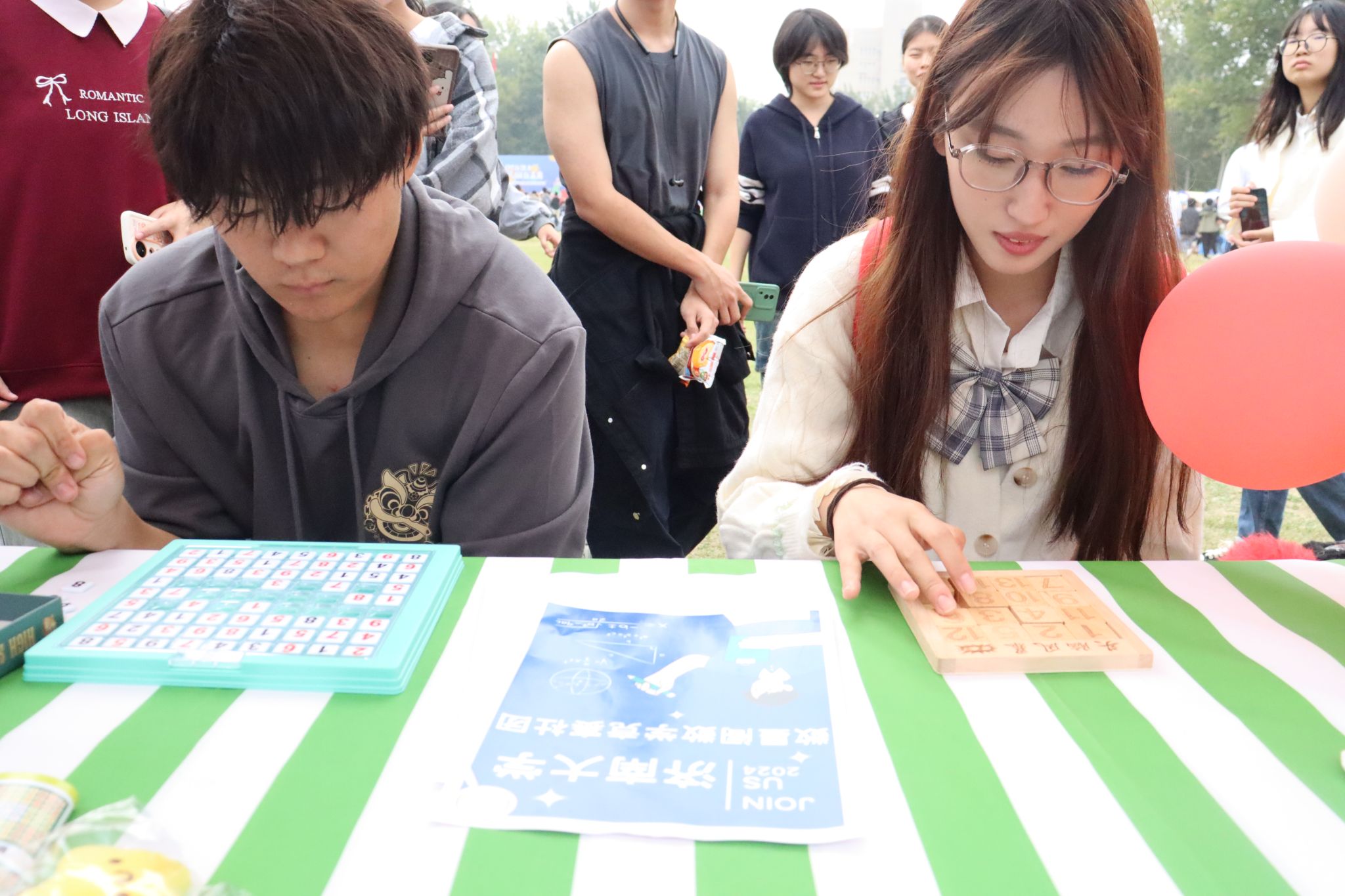 数学不只有枯燥的定理和公式,更有无限乐趣、无限可能。在活动现场,william威廉中文官网数星阁数学竞赛协会就以其别具一格的魅力吸引着众多观众欣然前往。数独、华容道等各类益智游戏,吸引了不同学院各个年级的同学们来此进行思维碰撞和脑力挑战。在游戏过程中,参与者沉着冷静,运筹帷幄,全神贯注于眼前的挑战,通过游戏体味数学知识,在探索中感受数学文化。此外,竞赛题目令人眼前一亮,以其多样的风格吸引着参与者积极投身其中。同时,数学建模也凭借其蕴含的团结精神与数学应用魅力,吸引了众多学生的关注。william威廉中文官网智慧树数学建模协会通过四面翻盘、俄罗斯方块拼图等游戏,让参与者在实践中体悟数学的迷人魅力,在竞争中磨砺自身思维能力,尽享数学之趣。