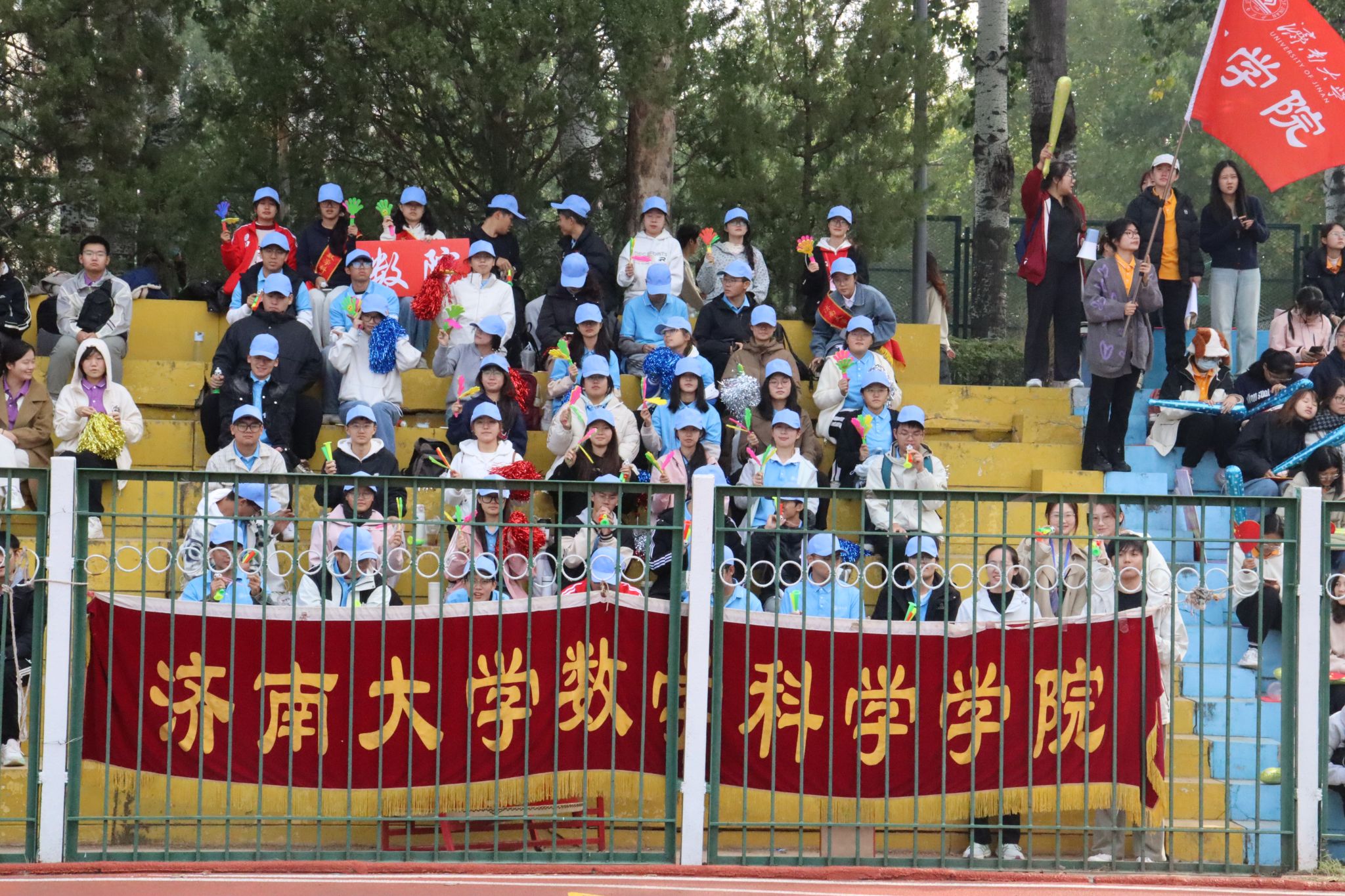 观众席上,加油声、欢呼声此起彼伏,响彻云霄。同学们敲鼓助威,为运动员们加油鼓劲,那份团结与友爱在阳光下熠熠生辉。