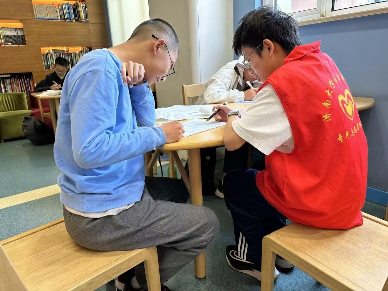 在活动中,志愿者们有条不紊地完成图书管理员分配的任务,无论是对混乱书目的重新排列,还是细致地进行图书整理,他们都展现出非凡的工作才能。书架上,图书整齐划一,这不仅方便了小朋友们寻找书籍,也进一步展示了志愿者的工作能力。此外,志愿者们与小朋友们的互动充满了乐趣,他们不仅协助小朋友挑选图书,还耐心讲解课后习题,提升了小朋友对学习的兴趣,为他们营造了一个温馨有趣的学习环境。在忙碌和有序的氛围中,志愿者们度过了一个意义非凡的下午。随着图书馆闭馆音乐的悠扬响起,志愿者与小朋友们的美好相遇也画上了的句号。
