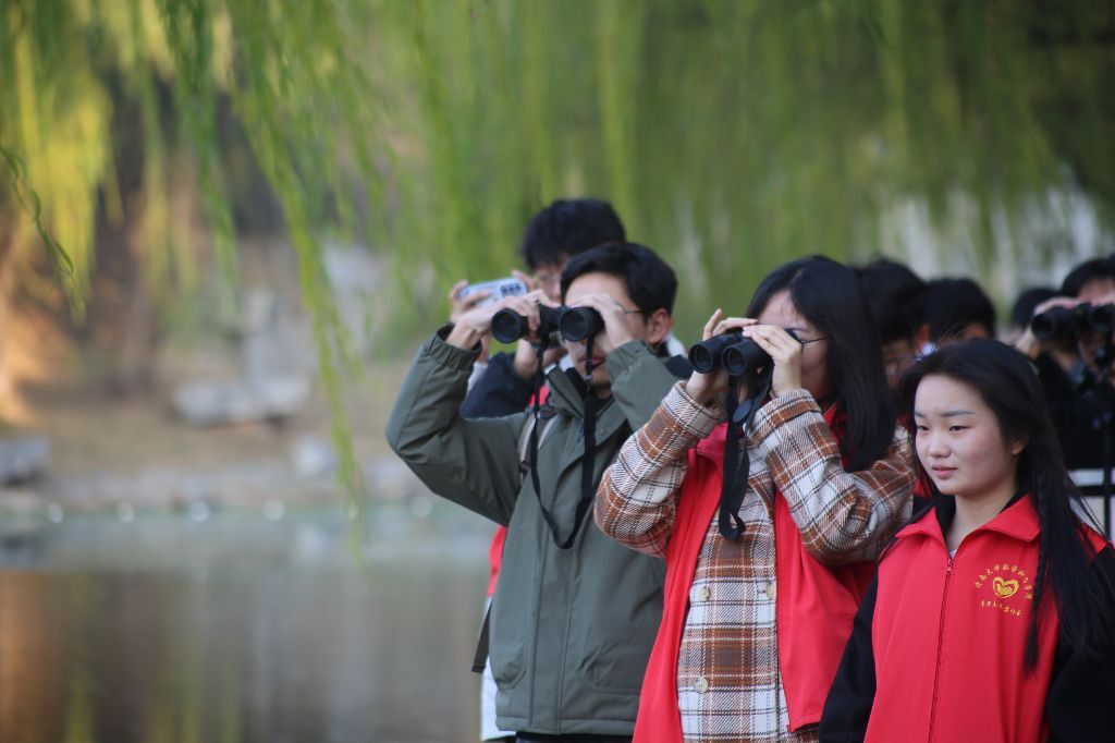 讲师带领学生们悄然步入静谧的观鸟区。在望远镜的帮助下,同学们仔细观察鸟儿的一举一动,讲师则轻声解说鸟儿的种类、生活习性。大家仔细记录,保持安静,不靠近巢穴、不追逐鸟儿。在尊重自然的前提下,尽情领略鸟儿的灵动之美。