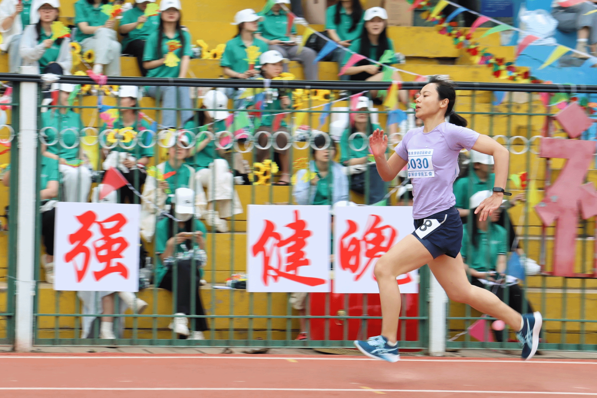 看台上,助威声此起彼伏;大本营里,学生志愿者用心服务,全程护航,展现出积极向上的精神风貌。