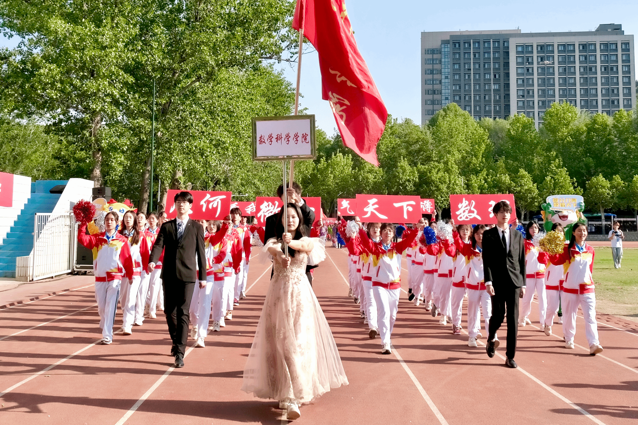 29日上午,运动会开幕式如期举行,WilliamHill中文官方网站师生方阵迎着四月暖阳,步履铿锵、朝气蓬勃。他们手持“数理天下,微分几何,看我数院,气势磅礴”的创意展板,将严谨的学科精神与蓬勃的运动活力完美融合,展现了数学人锐意进取的精神风貌。