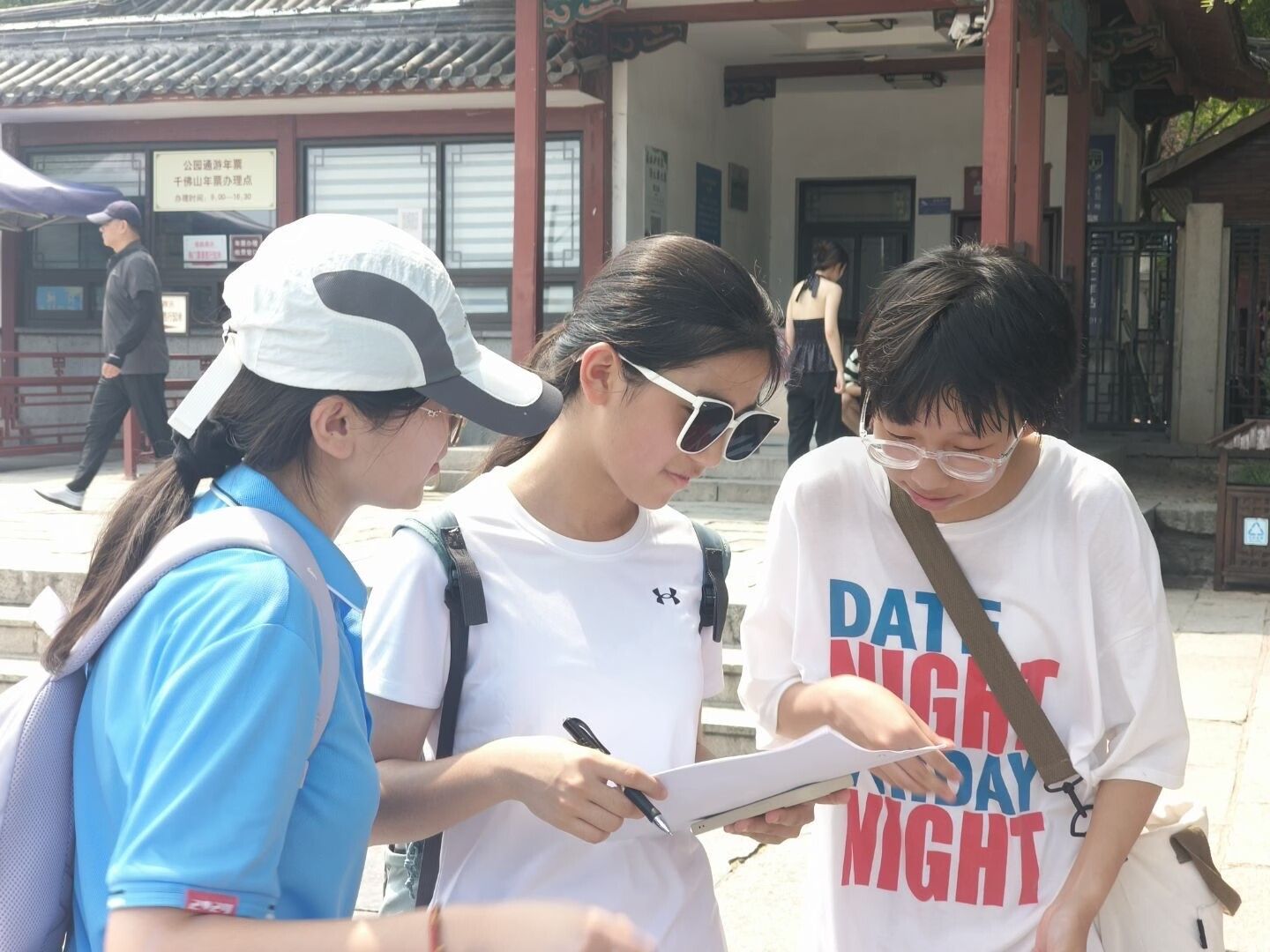 首先开展参观学习活动,近距离感受山东非遗的独特魅力,队员们纷纷记录关键信息,挖掘传统技艺中隐含的数学元素。实践环节中,团队分工明确且高效,两名队员负责访谈,与非遗传承人、展馆工作人员深入交流保护现状与传承困境。其余队员分为三组,围绕公众对山东非遗的认知程度、保护责任主体、传承方式等话题开展问卷调查。在千佛山景区中,大家面向不同年龄、职业的游客继续收集反馈,让调研数据更具代表性。随后,队员们分别深入山东省手造展示体验中心和非遗民俗手工艺展馆,通过问卷发放、街头访谈等形式,从多元场景中捕捉公众对非遗保护的真实看法,进一步丰富调研维度。
