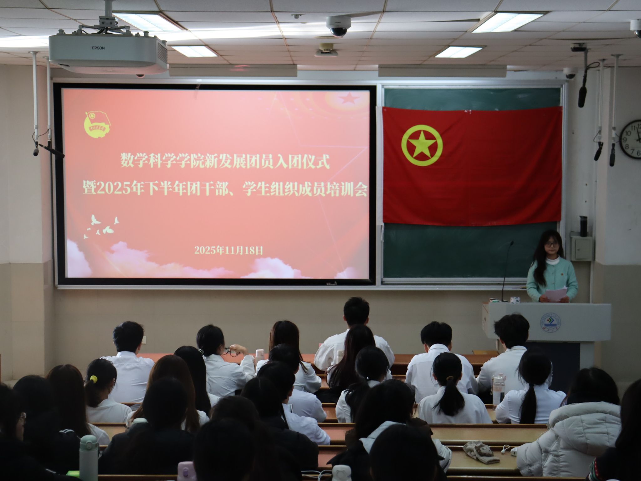 为深入学习贯彻党的二十届四中全会精神,引导青年学生进一步统一思想、凝聚共识、筑牢根基,WilliamHill中文官方网站团委于11月18日在11J1302教室举行2025年下半年新发展团员入团仪式暨团支部书记专题培训会。学院团委书记姬磊、2025年下半年新发展团员、全体团支部书记及学生组织干部参加本次活动。