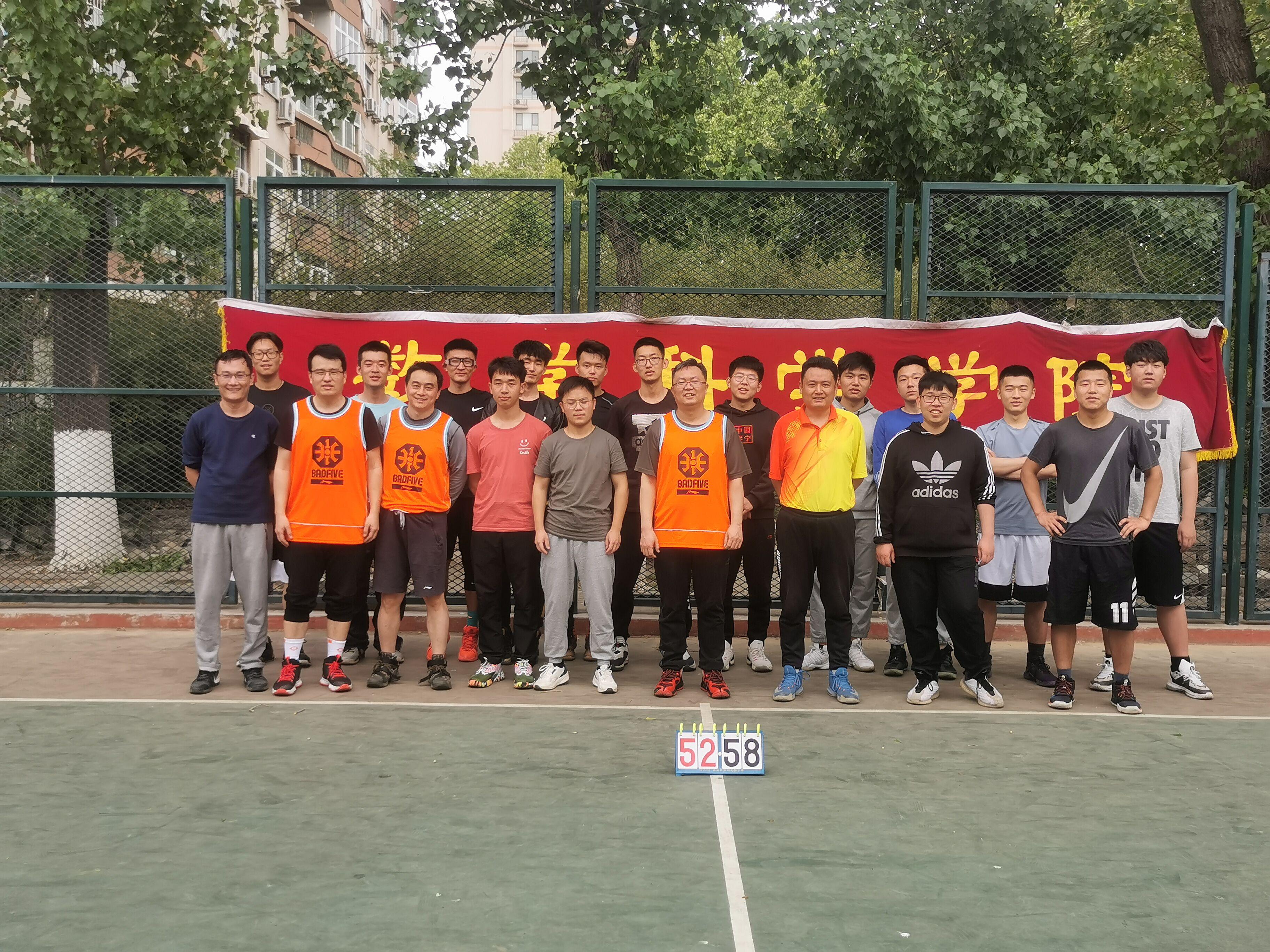 4月20日的北苑篮球场热闹非凡,同学与老师欢聚在篮球场上,欢声笑语与之相伴。经过短暂地热身后比赛正式开始。首先是教师队伍发球,经过一系列的传导后教师队成功得到了本场比赛的第一分。之后的比赛中两队比分交替上升,就在这种焦灼的状态中,双方球员屡屡打出精彩的进球,时而远投三分得手、时而一个漂亮的反手上篮,时而一个干脆利落的干拔跳投。在一旁的观众也不禁拍手叫好,为老师和同学们送上由衷的称赞。每一位参加其中的同学和老师都深深的投入到了比赛之中,他们享受着运动带来的乐趣,挥洒着阳光下闪闪发光的汗水,他们每一个人心情愉快、笑容也从他们的面孔上显露出来。经过一番激烈比拼,最终教师代表队与同学代表队以46比46的平局结束了此次比赛,赛后老师与同学们在一起合影留念,在欢快的氛围之中结束了此次师生友谊篮球赛