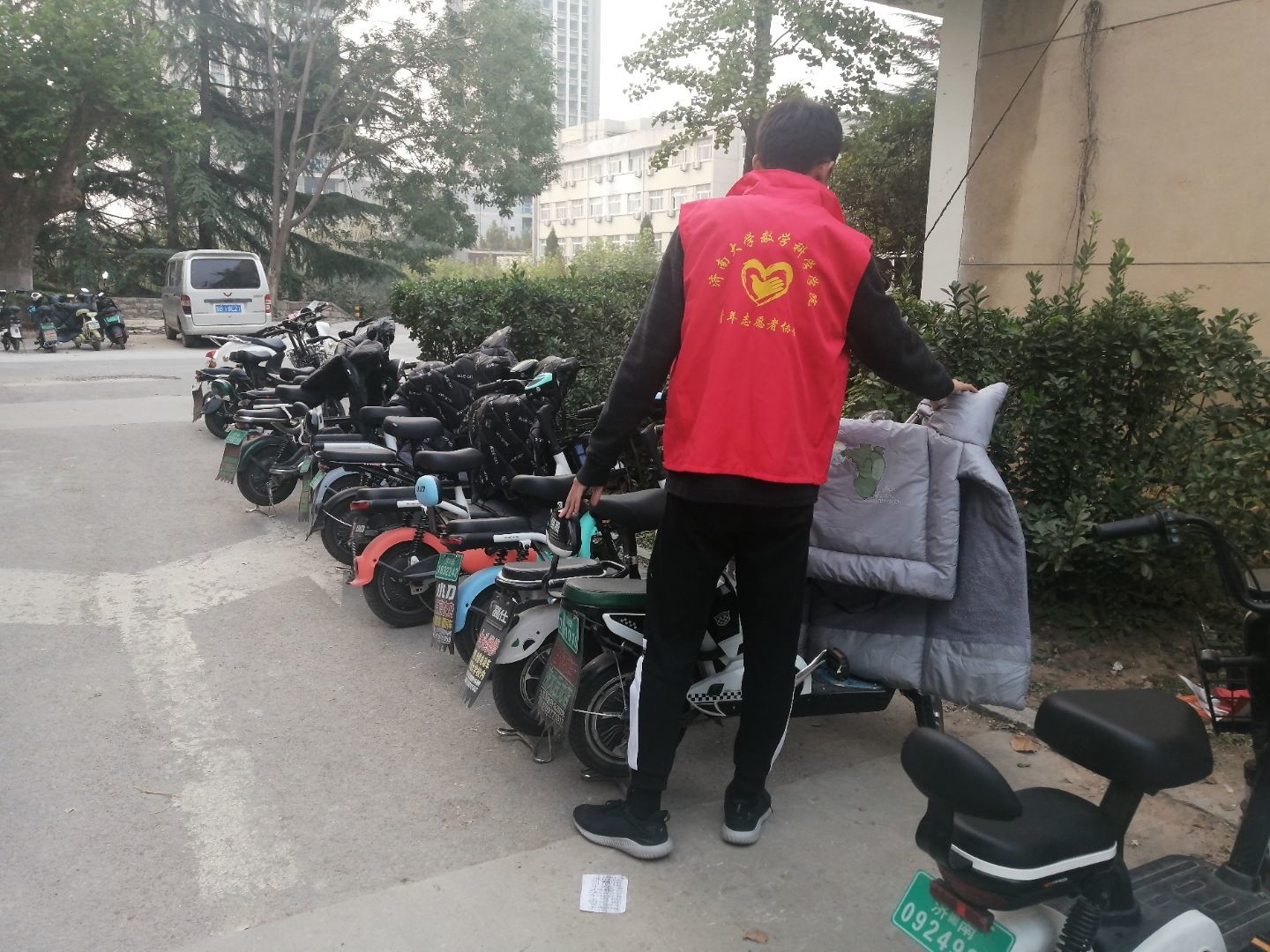 通过前期广泛宣传动员,活动当天吸引了大批学生来到现场积极参与,参与者们同期在教学楼、食堂前、学生宿舍附近进行自行车、电动车、共享单车的规范有序摆放志愿行动,主动提醒并引导停车同学规范停车,号召广大同学携手打造整洁有序的文明校园。值得一提的是,在活动过程中,很多经过的同学主动停下脚步,踊跃参与到活动中去,充分体现了当代大学生的责任意识和文明素质。同学们的志愿活动,让先前看起来杂乱无章的车辆变得整齐有序,也使得我们的校园变得更加整洁美观。