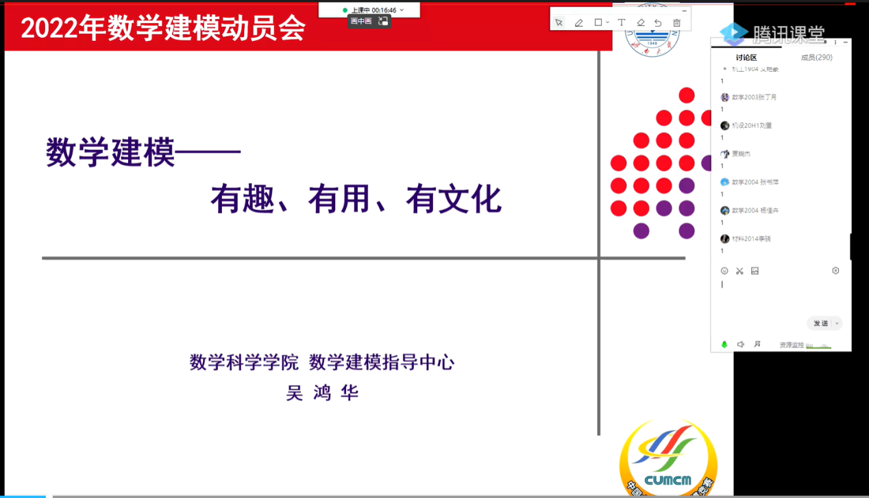 为助力我校学子了解数学建模、提高数学学习兴趣、培养数学应用实践能力,WilliamHill中文官方网站于3月15日下午线上举办了2022年大学生数学建模竞赛培训动员大会。本次大会由WilliamHill中文官方网站数学建模中心主任吴鸿华副教授主持,来自我校各院300余名优秀学子参加了会议。