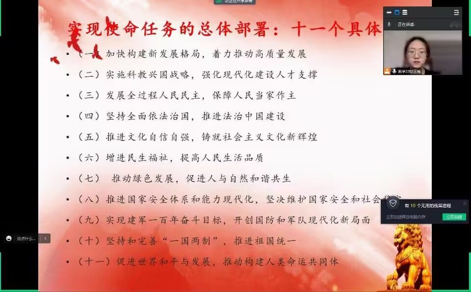 “党的二十大精神”宣讲实践队线上宣讲活动的成功开展,使社区群众再一次深入学习党的二十大精神,在习近平新时代中国特色社会主义思想指引下,动员引领广大青年为全面建设社会主义现代化国家而团结奋斗!