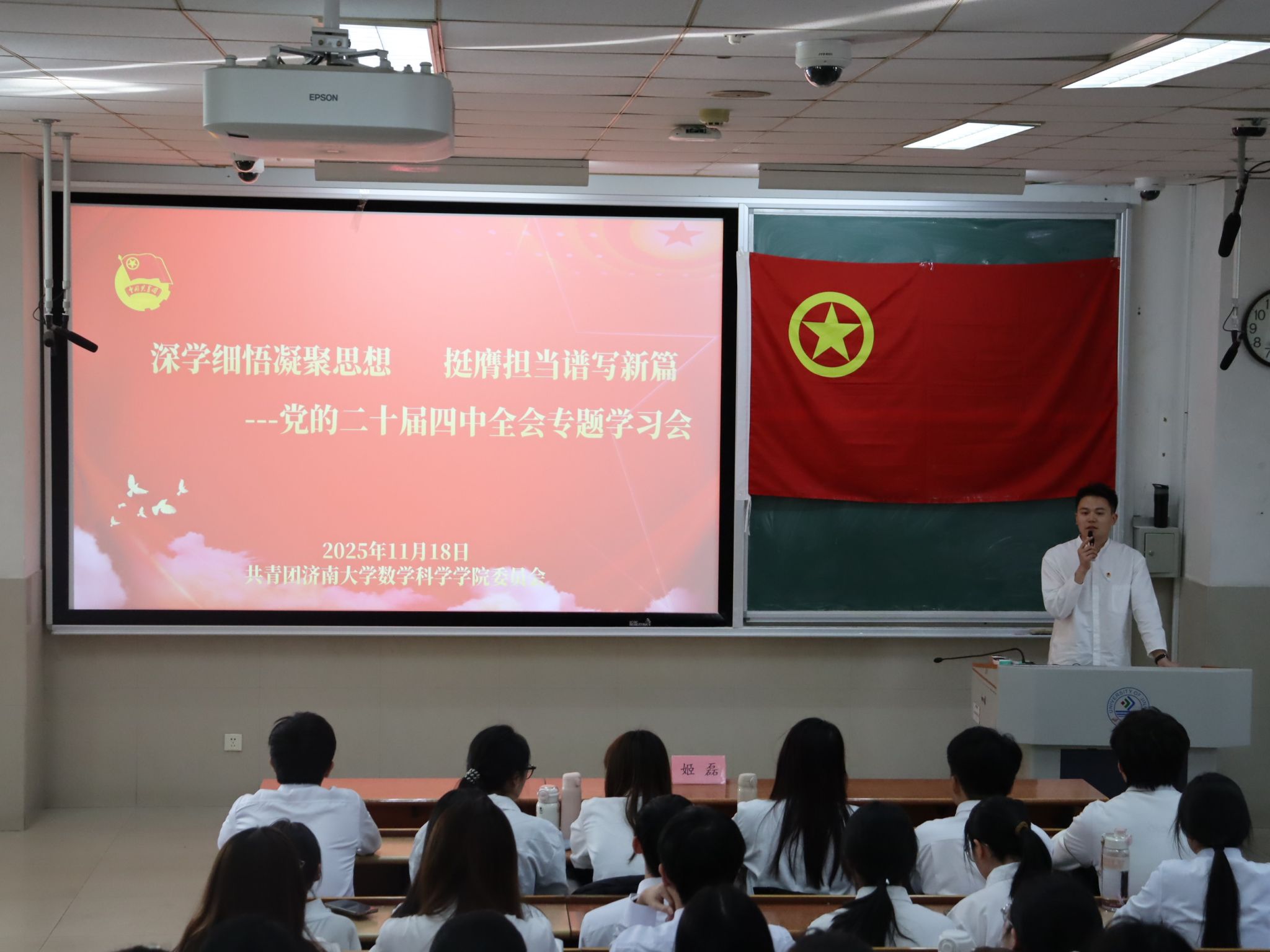 学院团委充分发挥“领头雁”作用,将学习贯彻党的二十届四中全会精神作为当前首要政治任务,精准锚定青年思想引领核心目标。第一时间召开专题部署会,传达学习全会公报及《中共中央关于制定国民经济和社会发展第十五个五年规划的建议》核心要义,结合习近平总书记对青年“立志做有理想、敢担当、能吃苦、肯奋斗的新时代好青年”的殷切寄语,创新打造“理论宣讲+平台赋能+实践驱动+红色浸润”四维学习模式:强化“示范引领”,学院团委书记姬磊以“奋进‘十五五’ 青春挺膺担当”为主题解读全会精神,系统解读全会提出的“科技自立自强”“高质量发展”等重大部署与青年使命的内在关联;依托“青年大学习”网上主题团课、推送专题学习图文、短视频,覆盖青年学子1000余人次;计划组建由团委书记、学生党员骨干、优秀团员组成的“青春宣讲团”,下沉各团支部开展靶向宣讲,实现理论学习从“灌输式”向“互动式”转变;精心策划红色主题教育系列活动,组织新发展团员、“青马工程”学员等赴济南战役纪念馆、英雄山开展沉浸式学习,让红色基因与全会精神深度融合。