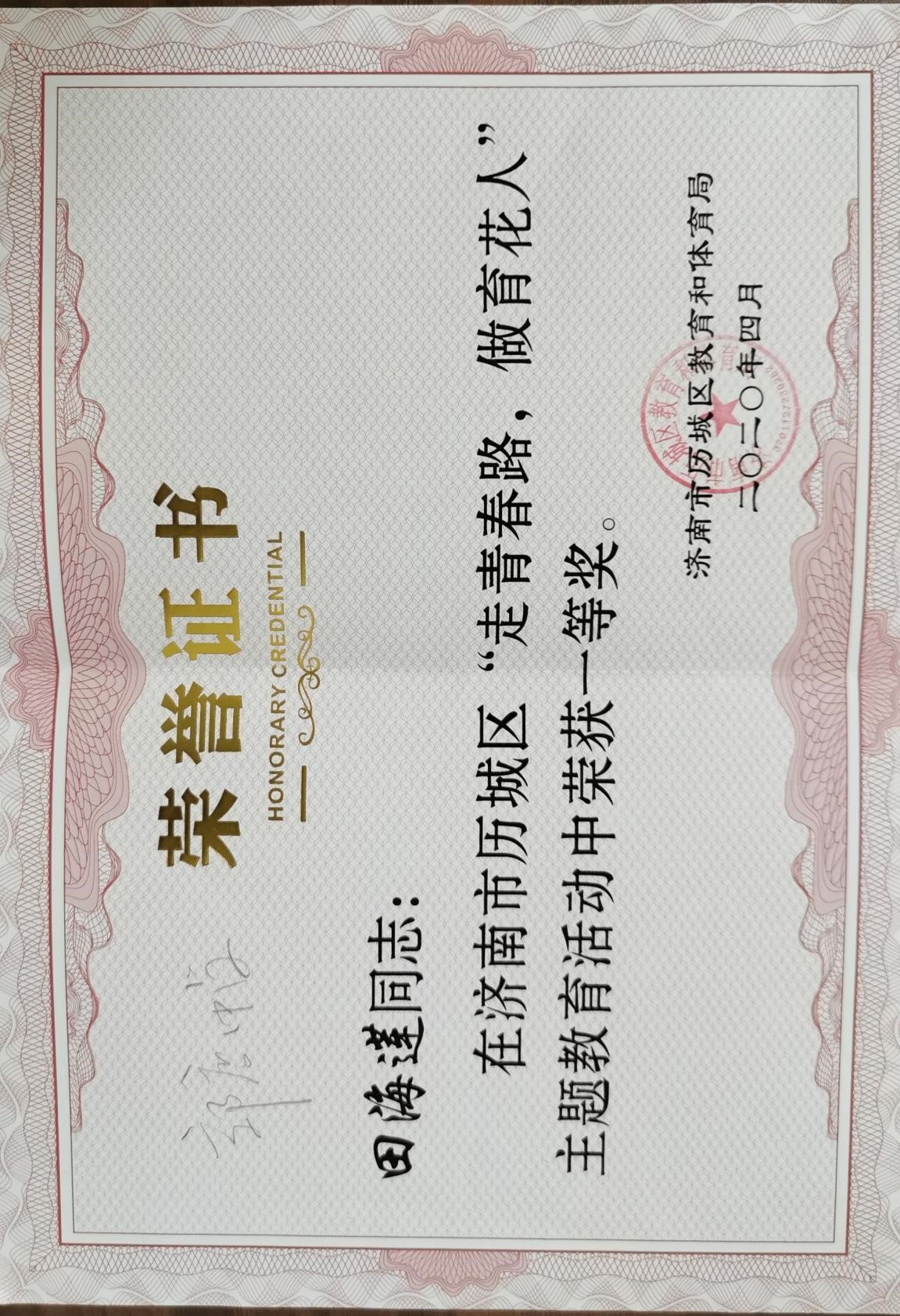 每当我接手一个班集体,我都会告诉同学们我最看重的是人品,一撇一捺把人做好,才能在社会上立足。我们一定要弘扬社会主义核心价值观,做对社会有贡献的人。同学们都说我是真正让他们喜欢的老师。所带班级班风正,学生们都是满满的正能量。2013年5月所带班级被评为“济南市优秀班集体”。2014年我被评为“历城区政府优秀班主任”。2017年被评为“济南市优秀班主任”。