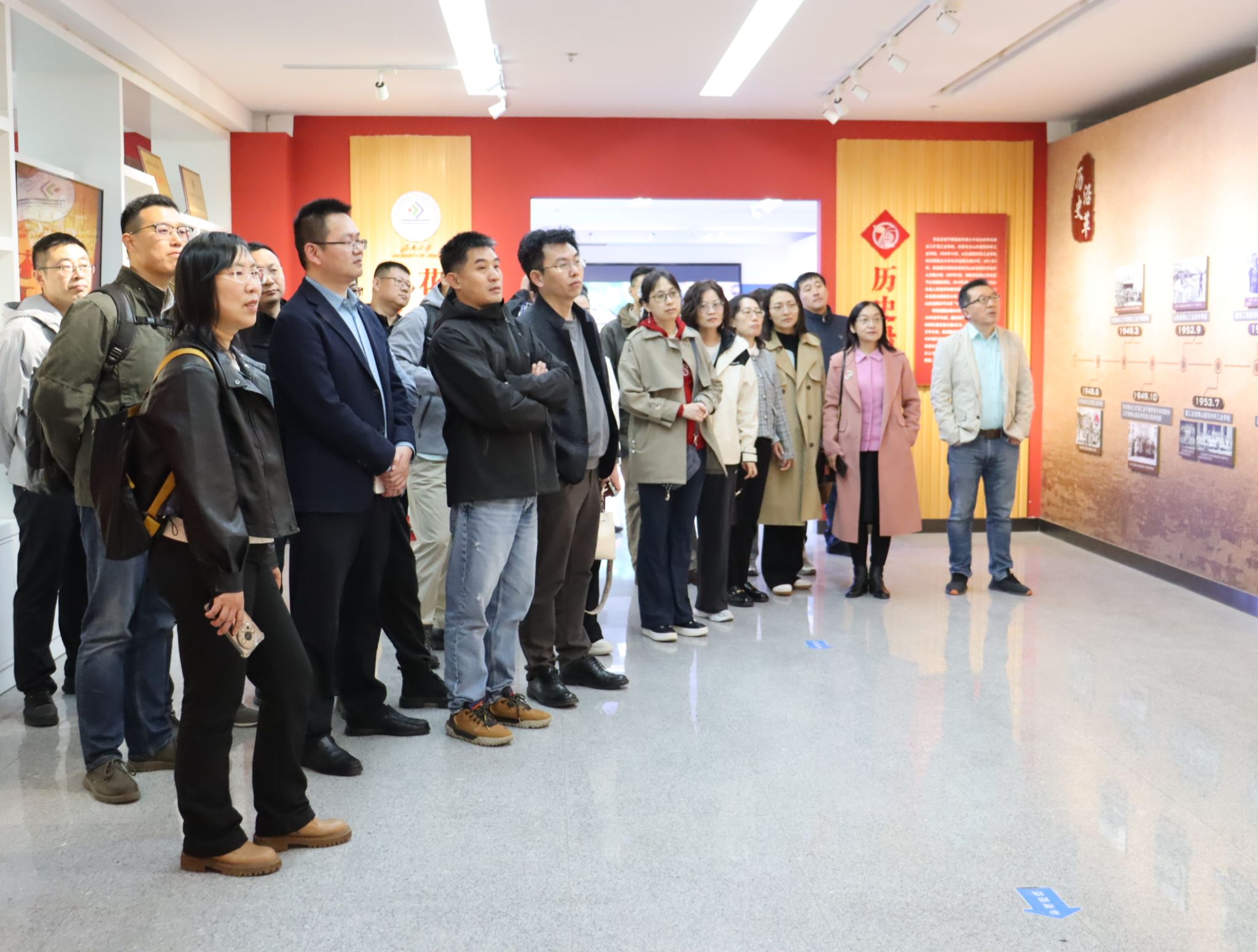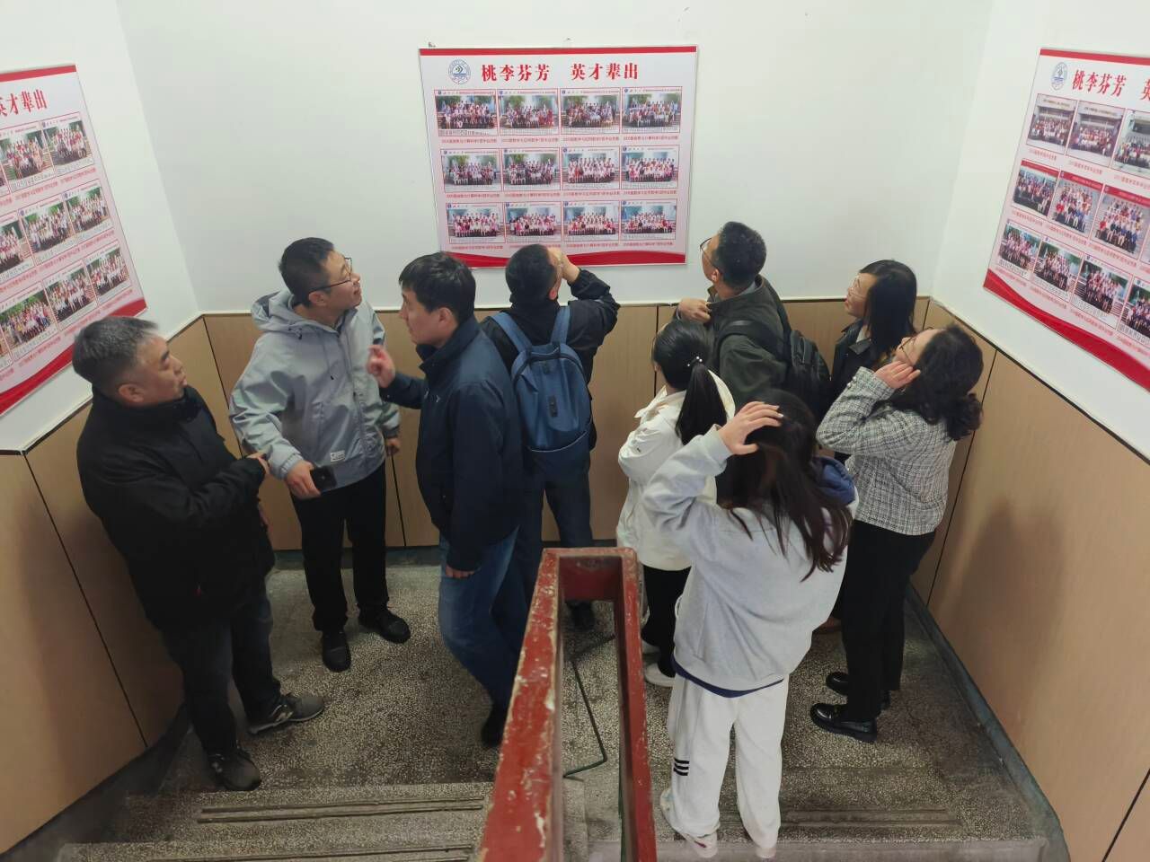 在学院毕业照片墙前,校友们驻足良久,仿佛穿越回了那段青涩的校园时光。