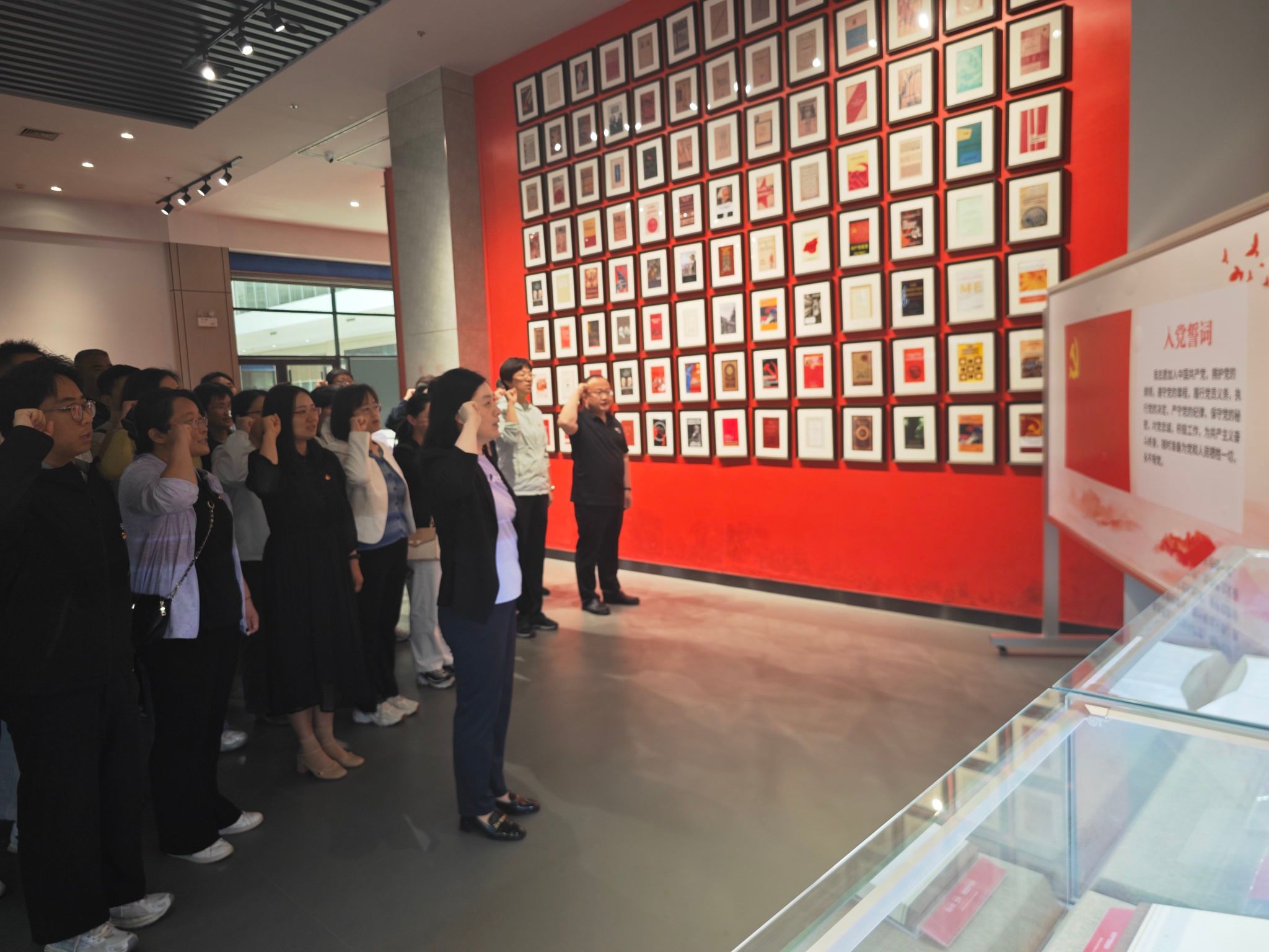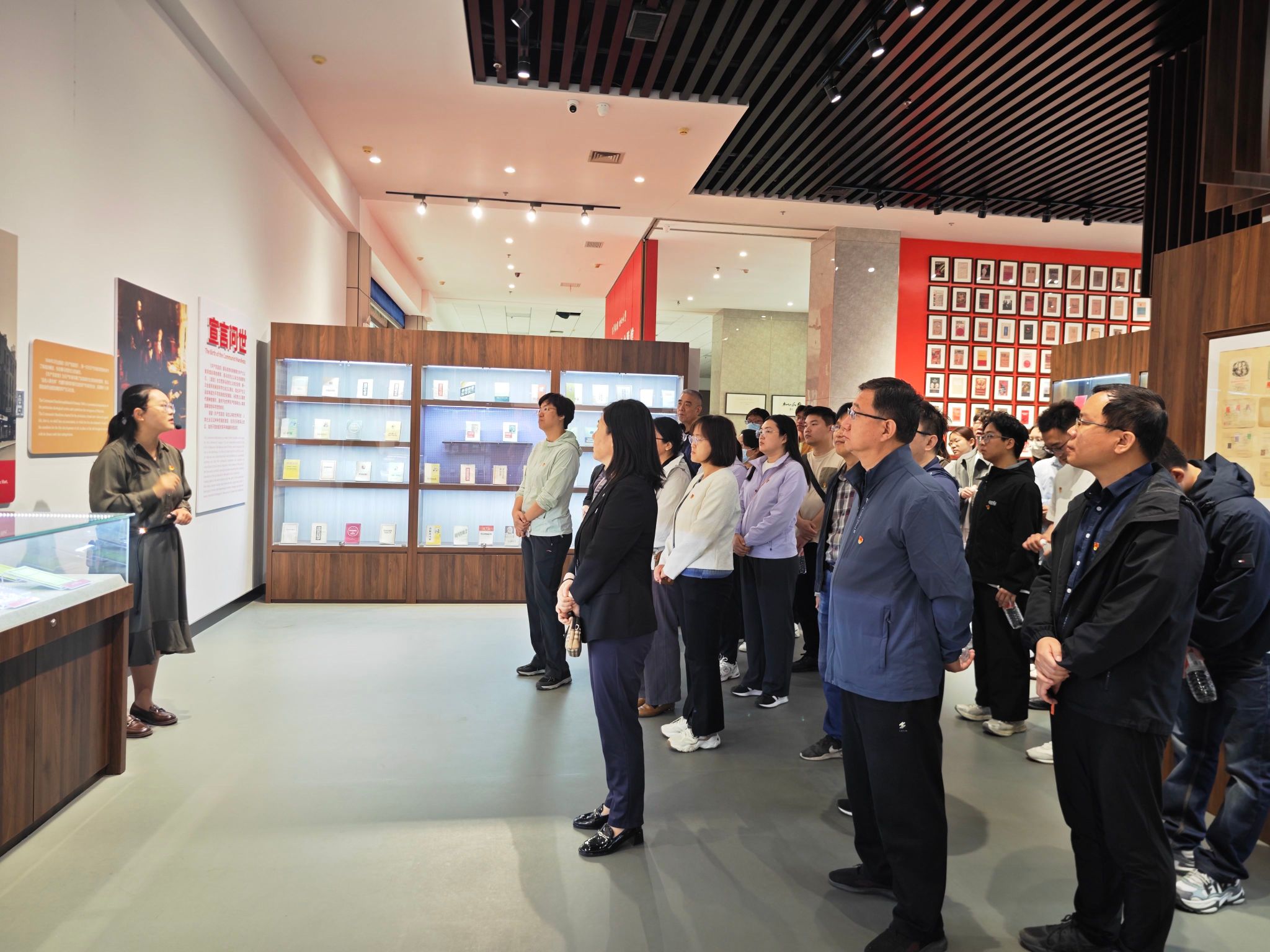 在展馆讲解员的引导下,党员们依次观摩了“宣言问世”“大道行远”“日出东方”“砥砺奋进”和“伟大复兴”五个部分,感悟真理光辉,汲取精神力量。展馆内陈列了多个版本的《共产党宣言》珍贵文献、中国共产党成立初期的重要历史图片与实物,以及中国共产党人践行初心使命的生动故事。通过一幅幅图片、一件件文物,师生党员们系统了解了《共产党宣言》的诞生背景、传播历程及其对中国革命和建设的深远影响,深刻感悟马克思主义真理力量与中国化时代化的伟大实践成就。在鲜红的党旗下,全体党员庄严举起右拳,重温入党誓词。铿锵有力的誓言回响在展馆内,彰显了新时代共产党员的坚定信念与责任担当。师生党员还参观了山东交通学院汽车文化博物馆。