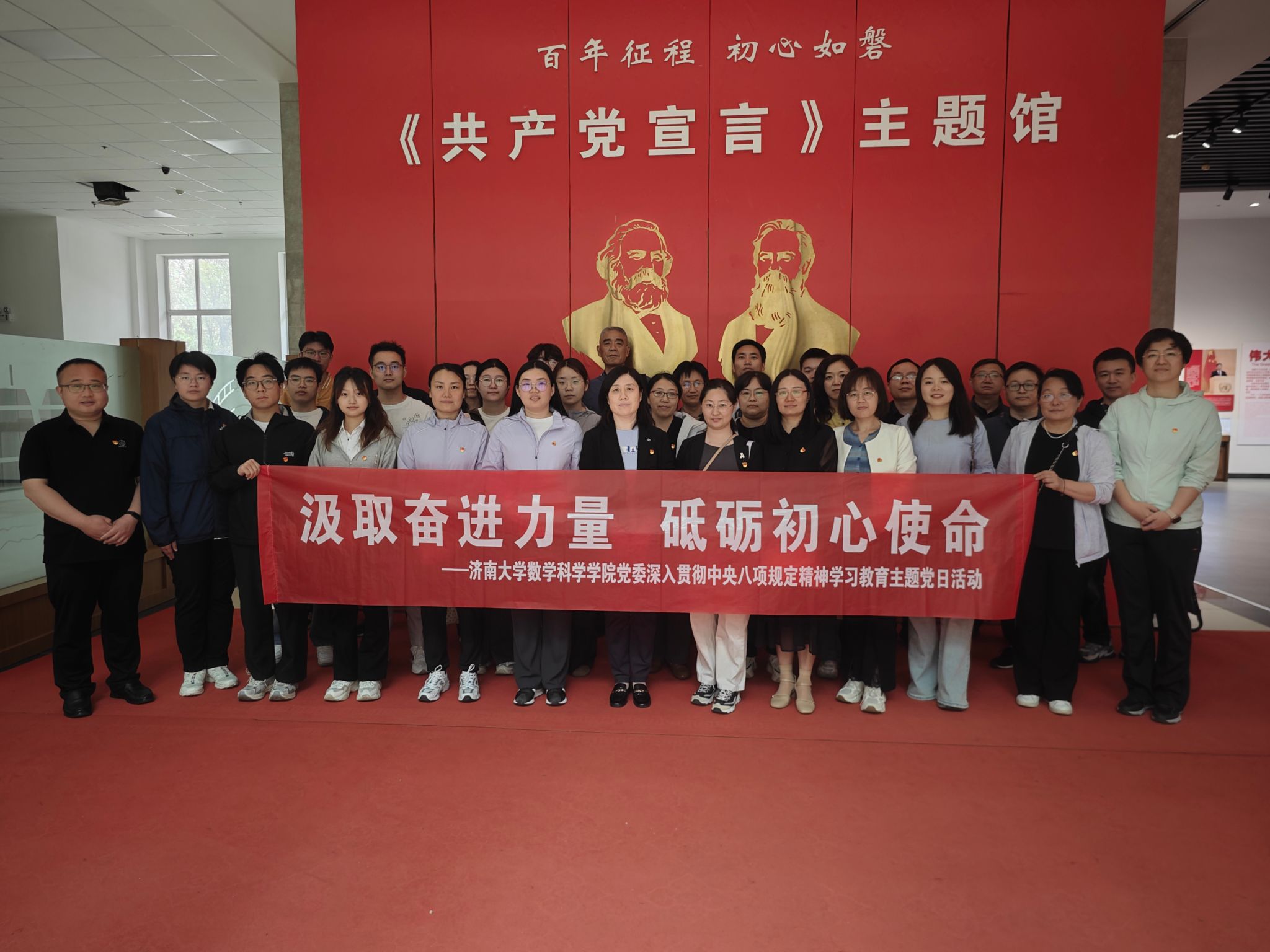 为深入学习习近平新时代中国特色社会主义思想,强化党员政治意识,在实践中锤炼党员党性,推进深入贯彻中央八项规定精神学习教育走深走实,WilliamHill中文官方网站党委于4月30日上午在山东交通学院《共产党宣言》展馆开展“汲取奋进力量 砥砺初心使命”深入贯彻中央八项规定精神学习教育主题党日活动,通过沉浸式研学、重温入党誓词、感悟思想伟力,进一步坚定理想信念、凝聚奋进力量。学院师生党员代表40余人参加,活动由WilliamHill中文官方网站党委书记崔英静主持。